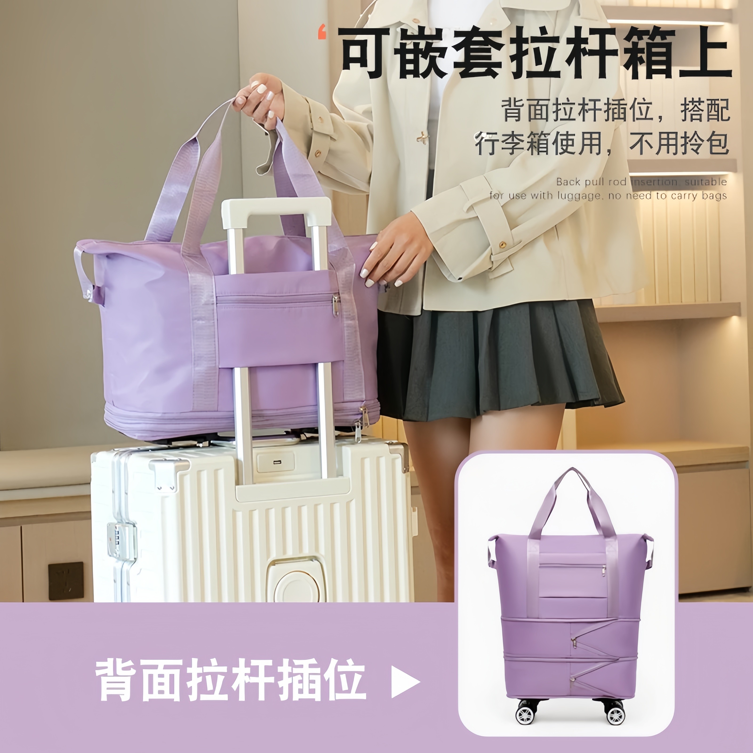 万向轮折叠行李包男短途旅行包超大容量女行李袋带滑轮旅游便携包
