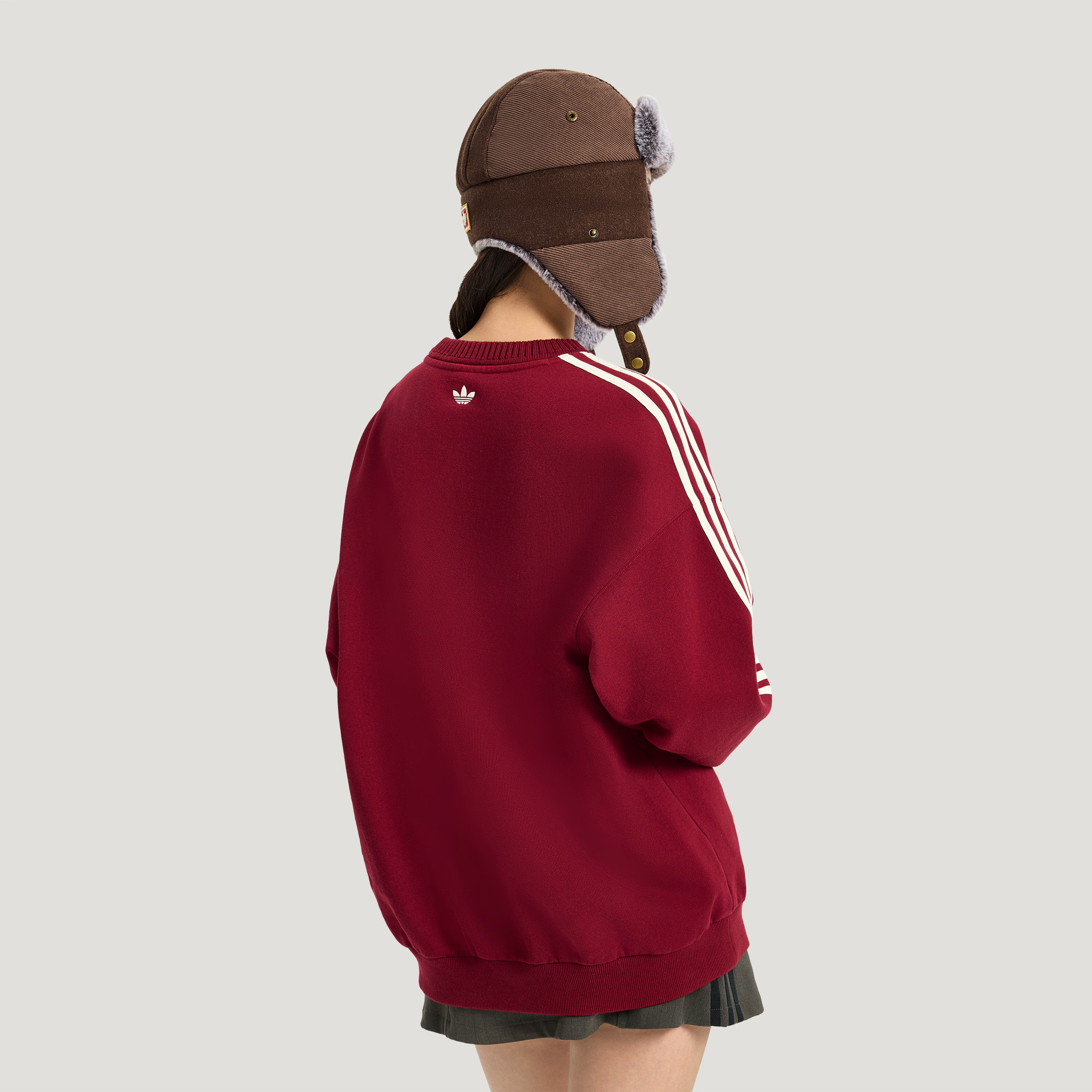 阿迪达斯三叶草新年款红色卫衣26新款男女休闲圆领套头衫 KU1423