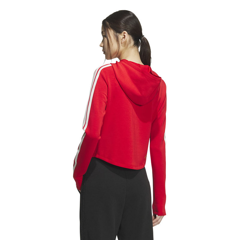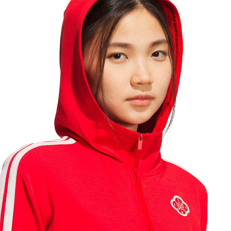 adidas阿迪达斯套头衫马年新年款红色三条纹连帽春女卫衣 KG3457