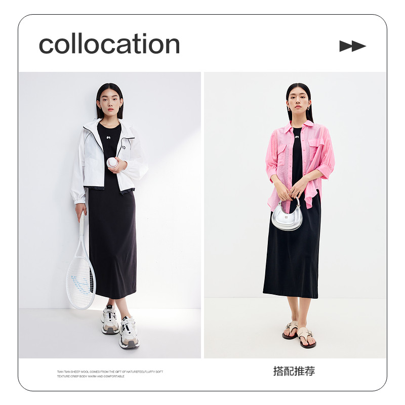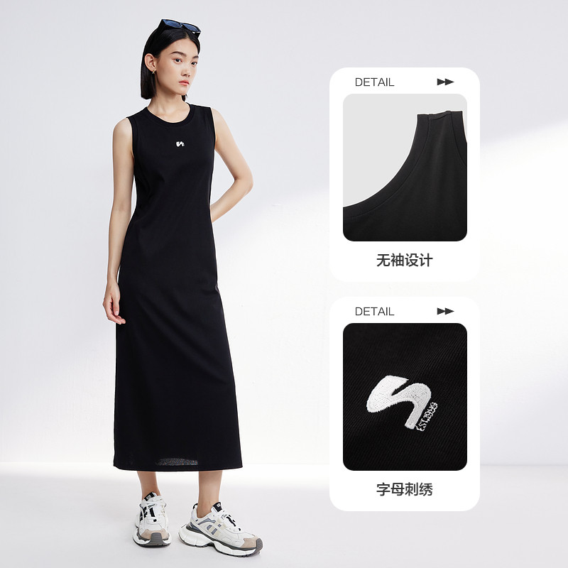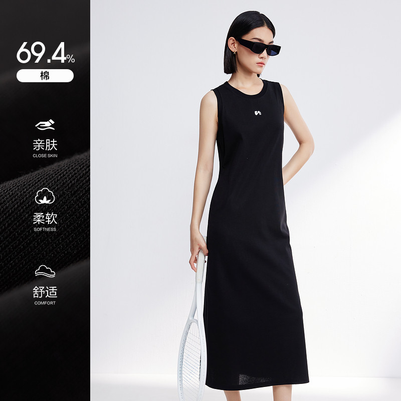 水云间黑色背心连衣裙女装户外网球运动风针织长裙子2025夏季新款