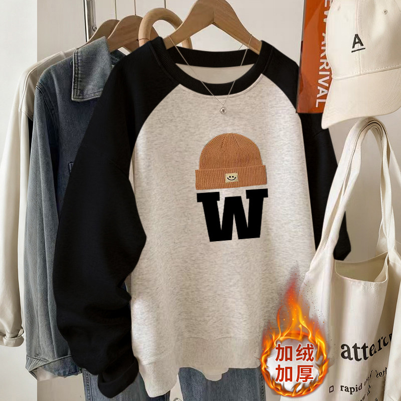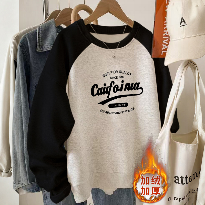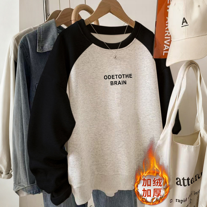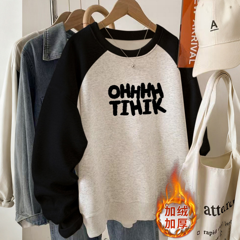 美式复古加绒加圆领卫衣女款无帽秋冬正肩长袖上衣女秋冬2025新款