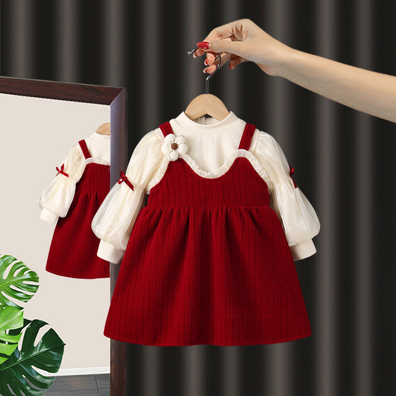 女童连衣裙套装时髦秋冬2025新款洋气女宝宝周岁礼服儿童公主裙子