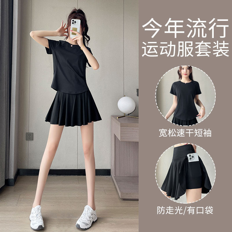网球运动套装女夏薄款羽毛球服宽松速干短袖瑜伽健身上衣时尚短裙