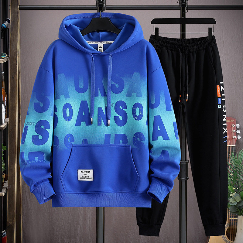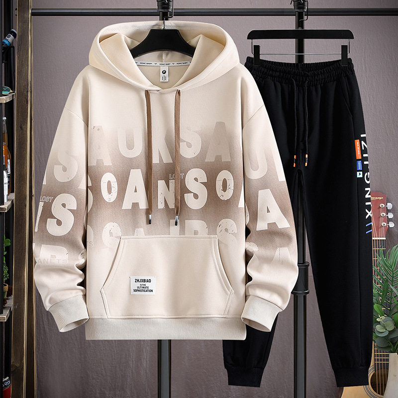 青少年秋冬季2026加厚卫衣套装男帅气潮流初高中学生时髦两件套男