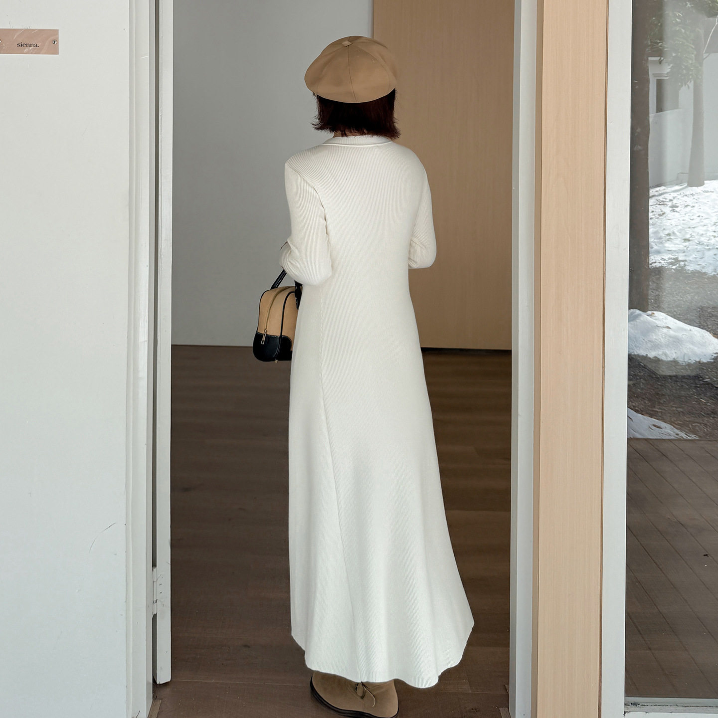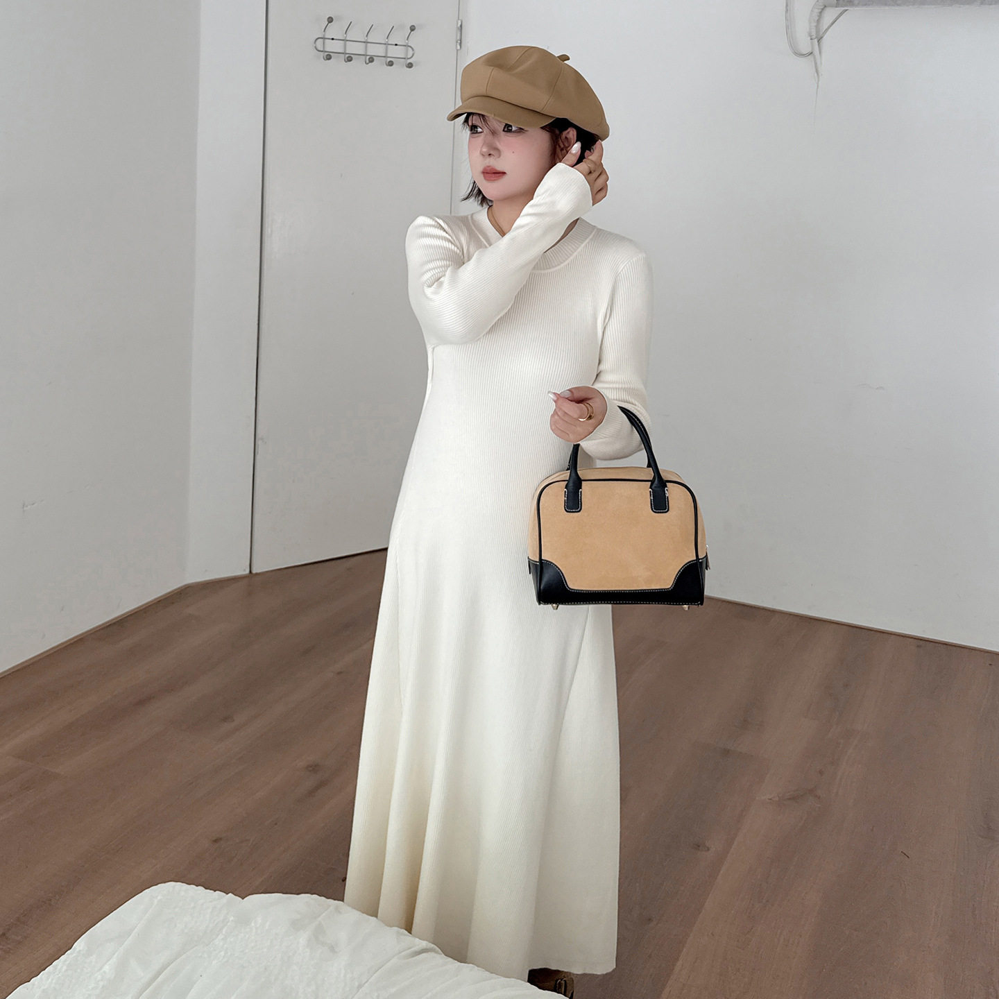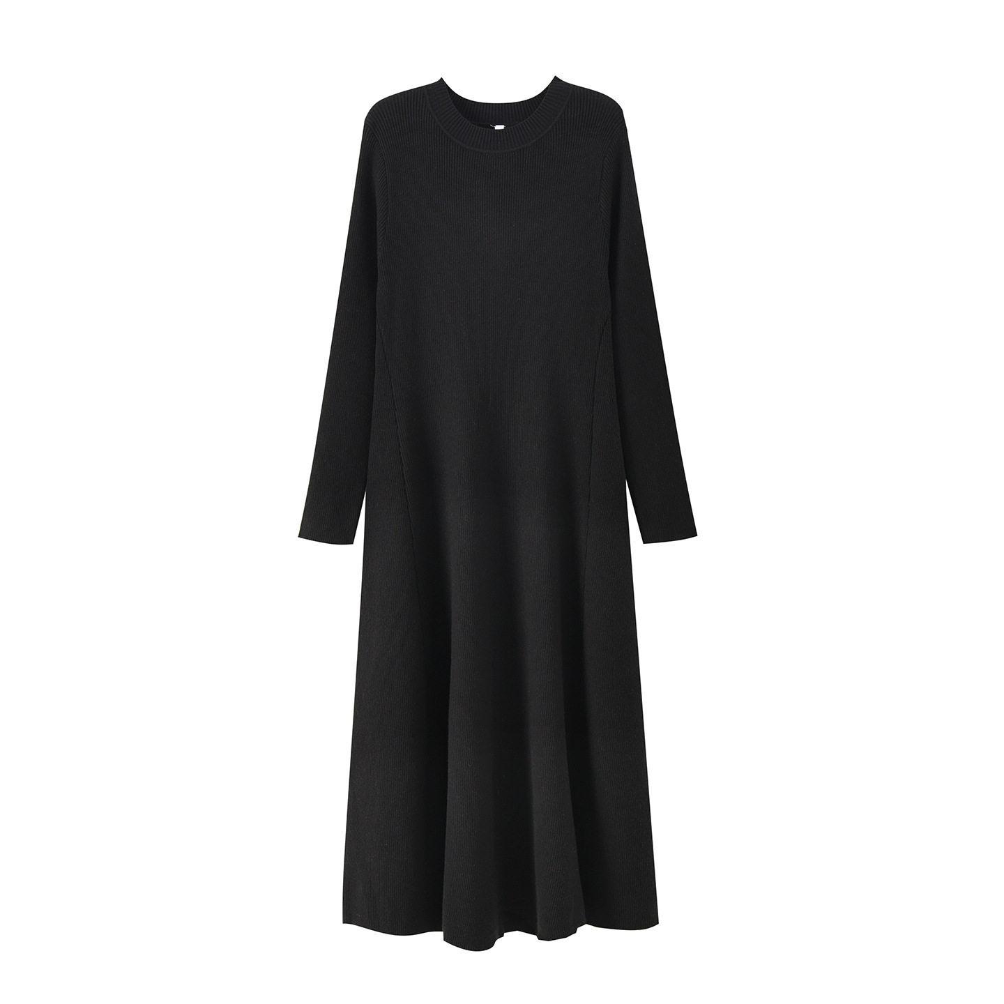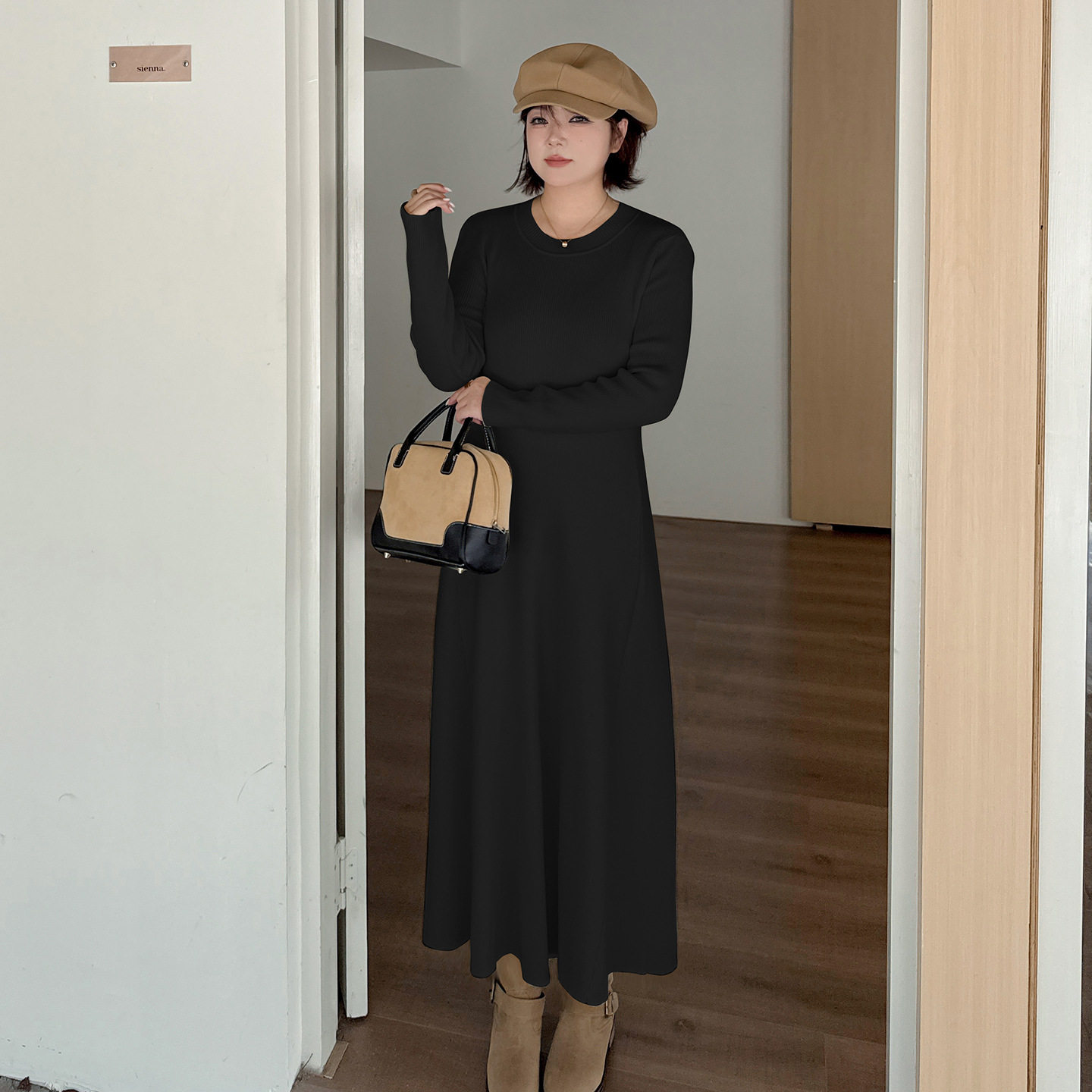 小波家2025冬季胖mm圆领针织连衣裙百搭收腰A字长裙