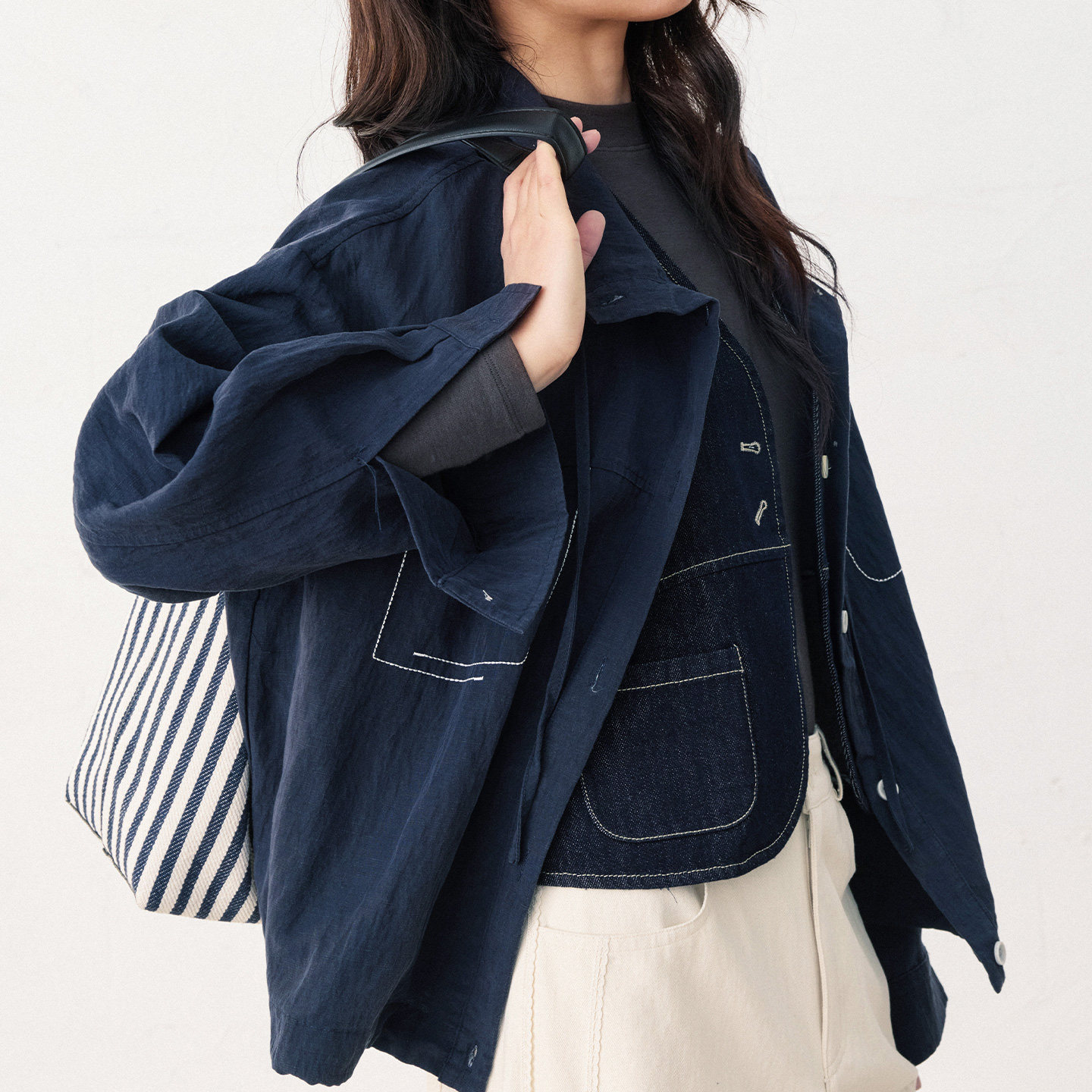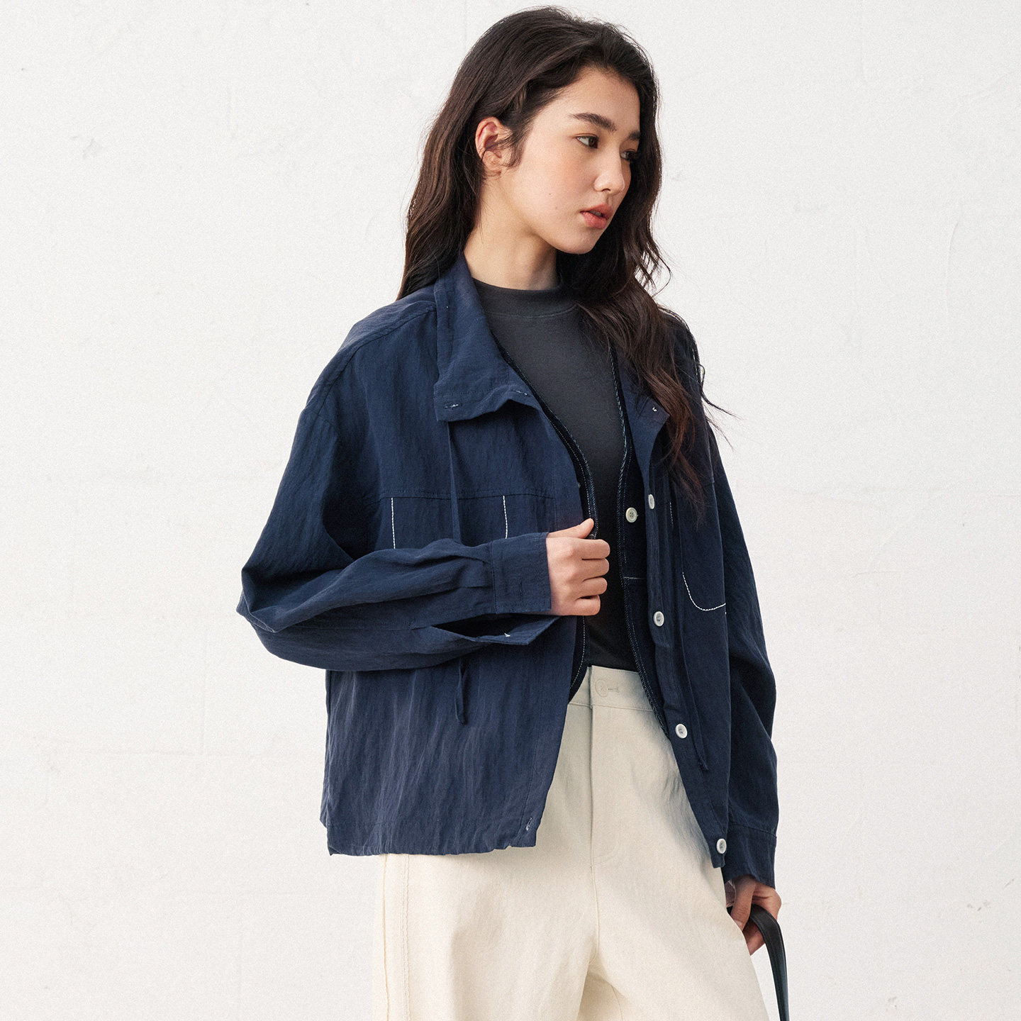 非鱼2026早春新款外套明线装饰文艺休闲女装外套翻领显瘦百搭上衣