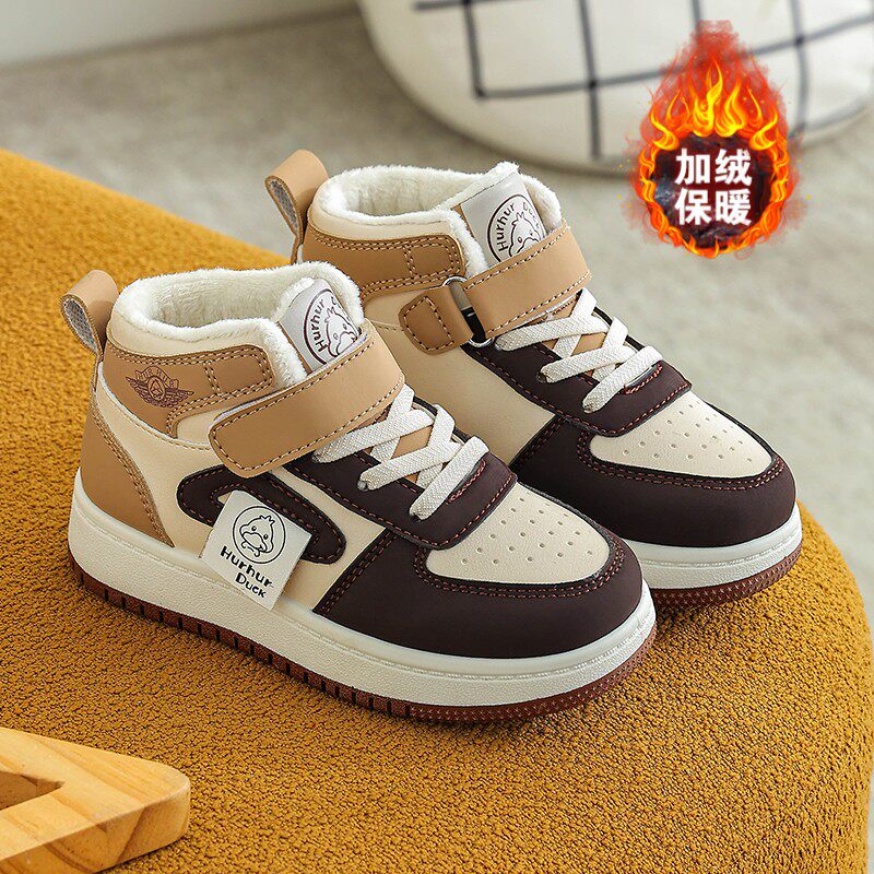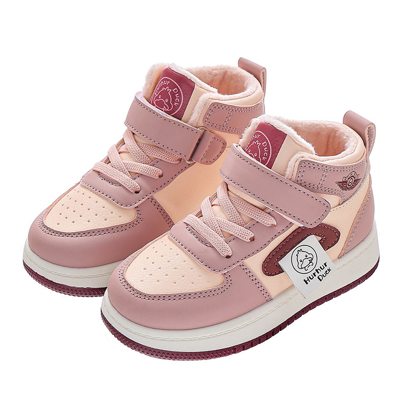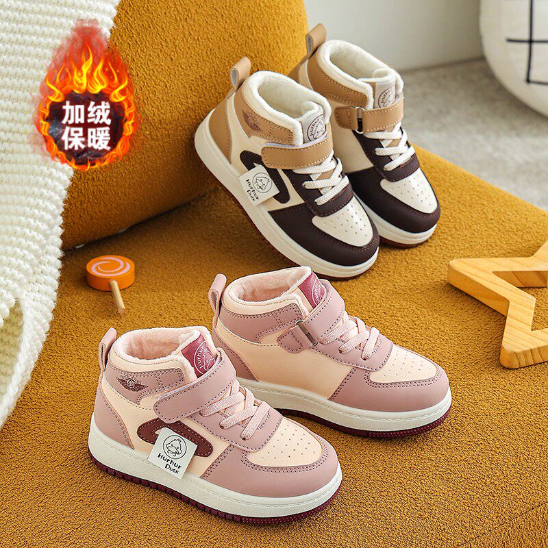 小黄鸭童鞋女童鞋高帮儿童运动鞋2026秋冬新款女孩板鞋加绒二棉鞋