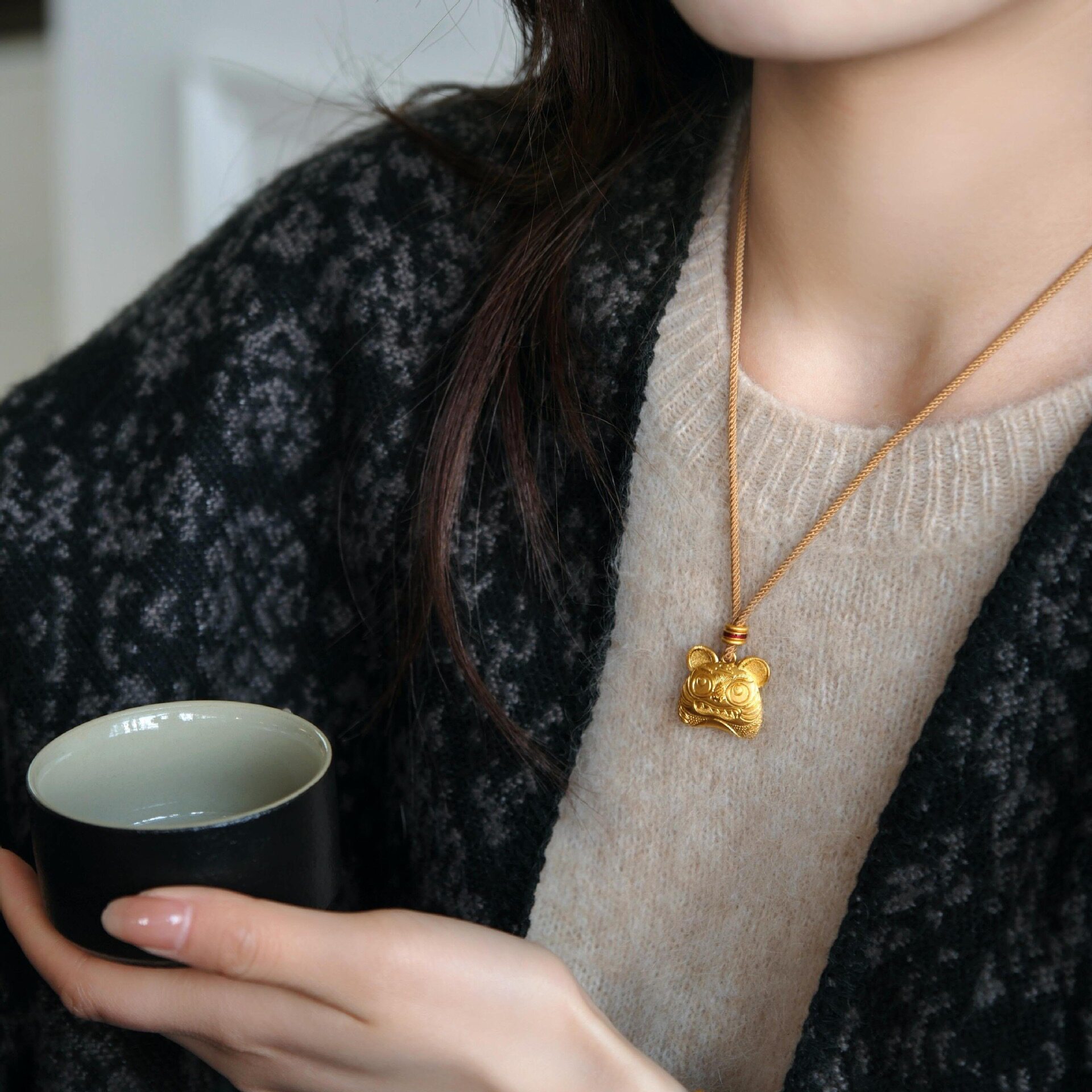黄金色布老虎项链2025新款复古高级感生肖虎好运吊坠毛衣链送礼物