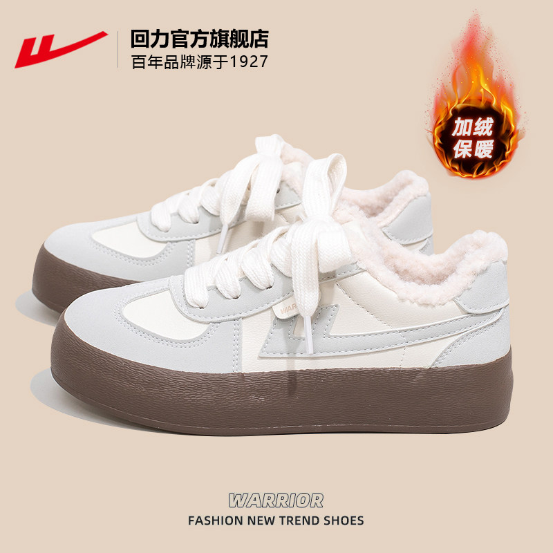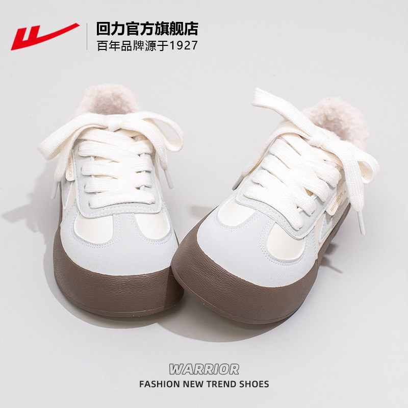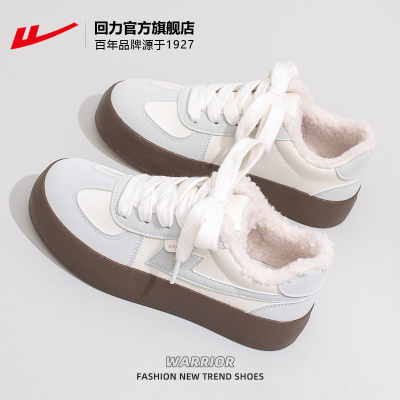 回力加绒小白鞋女款2026新款冬季鞋子女鞋百搭学生德训鞋厚底板鞋