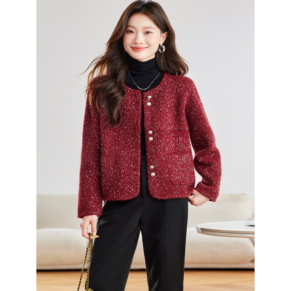 今年流行早秋漂亮小香风外套女士短春秋洋气红色上衣2025新款爆款