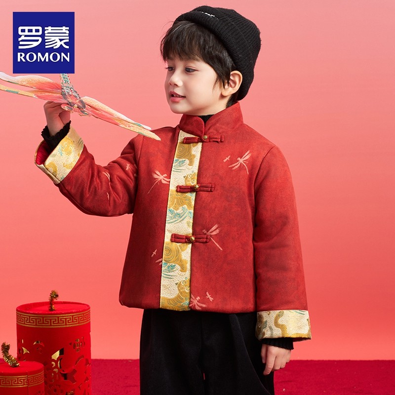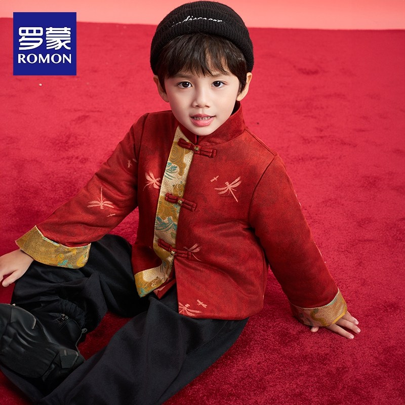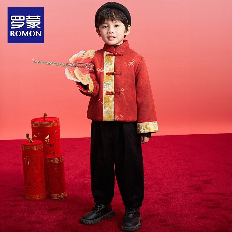 罗蒙男童新中式拜年服过年衣服盘扣中国风新年马年2026冬演出服