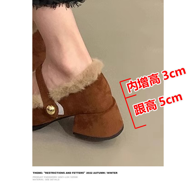 内增高法式粗跟加绒毛毛单鞋女2025秋冬新款小个子高跟鞋玛丽珍鞋