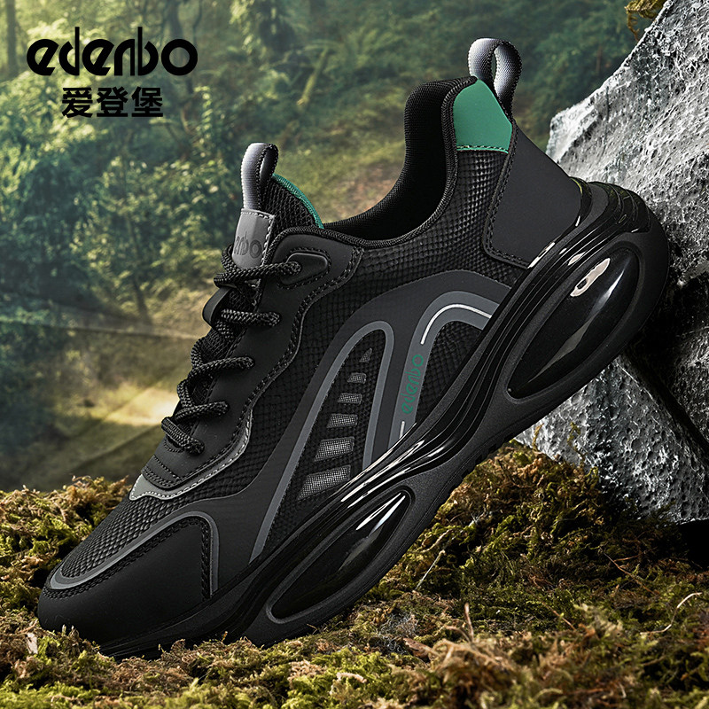 爱登堡运动鞋男2025新款秋季透气黑色气垫减震轻便软底超轻跑步鞋