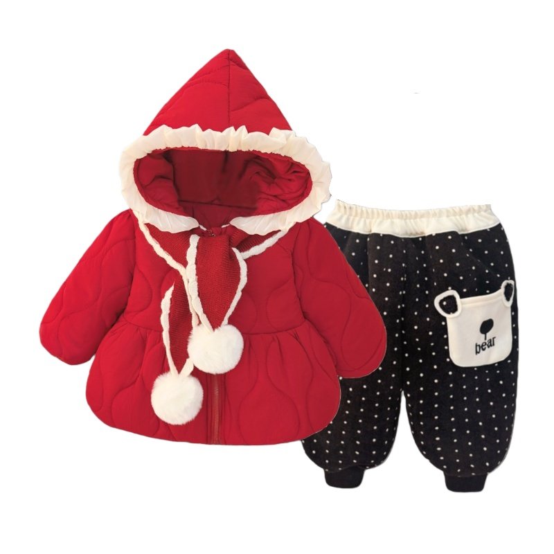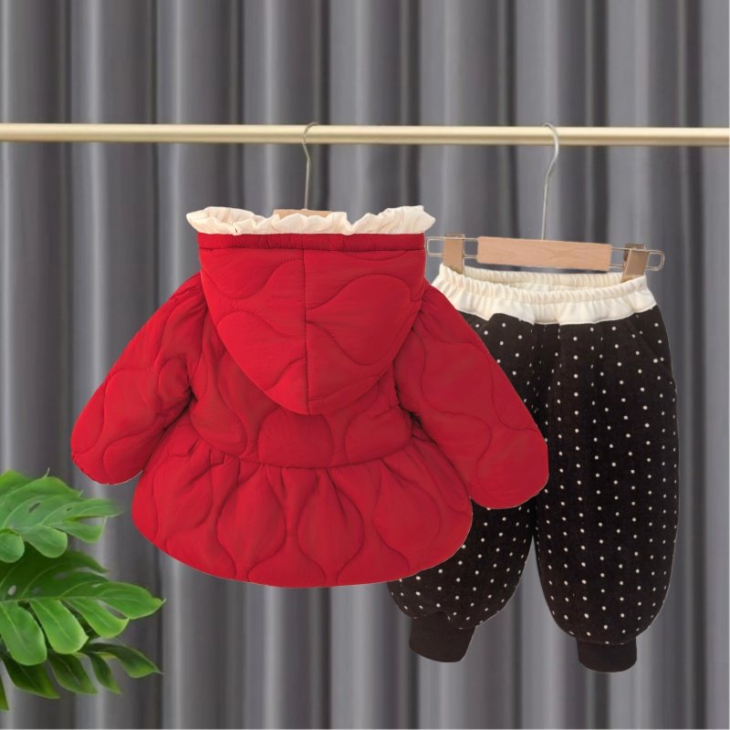 女童冬装2026新款套装儿童红色棉衣宝宝新年穿搭巨好看加绒两件套