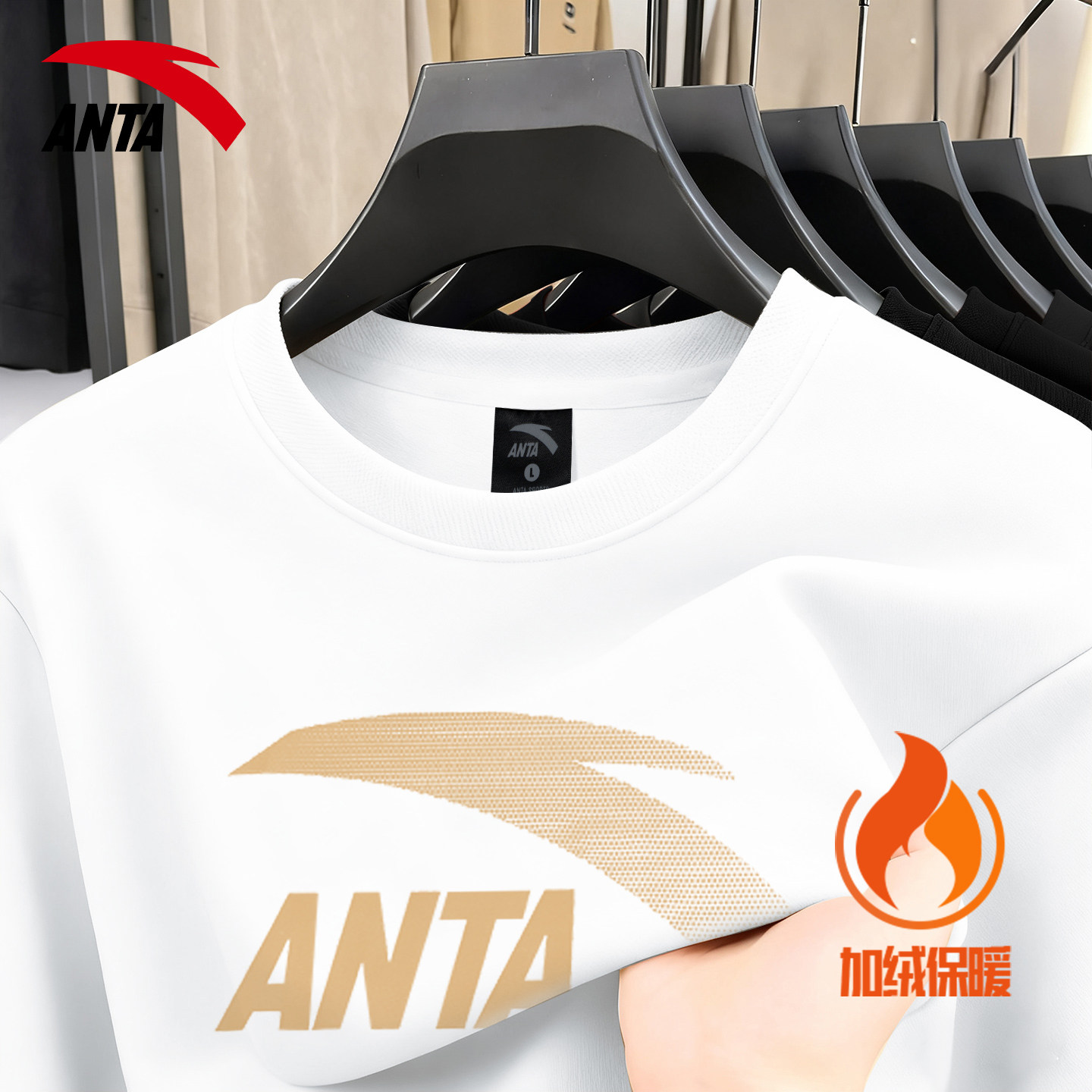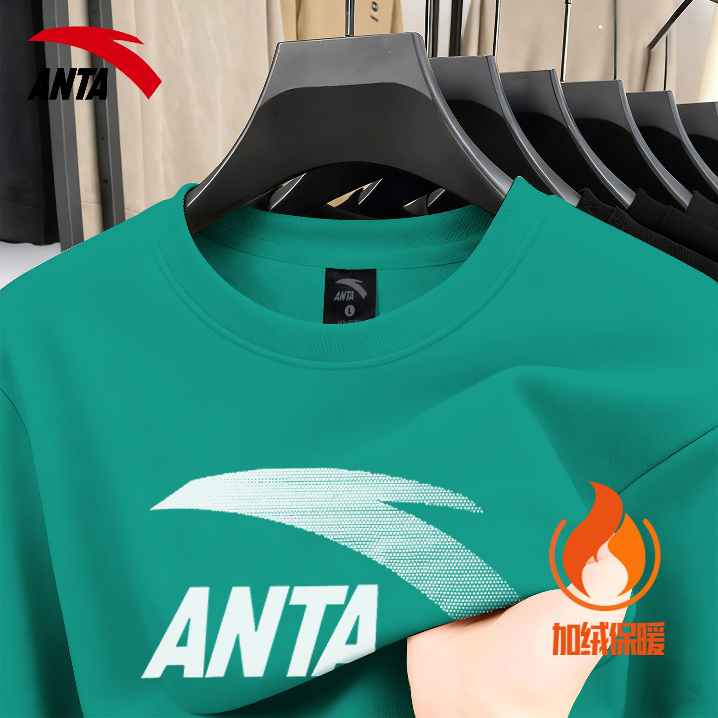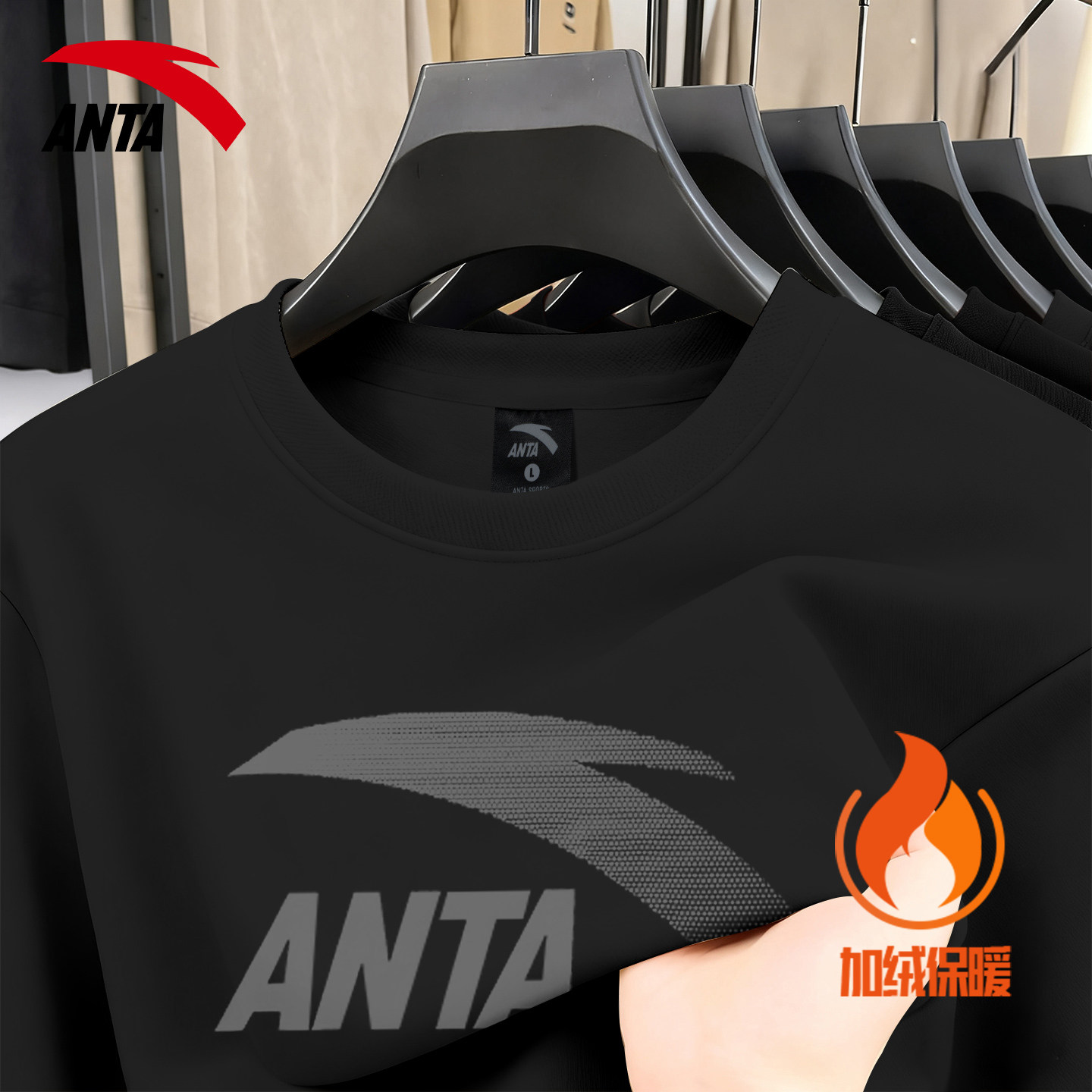 安踏加绒卫衣男士秋冬季港风内搭打底衫青少年宽松休闲无帽外套男