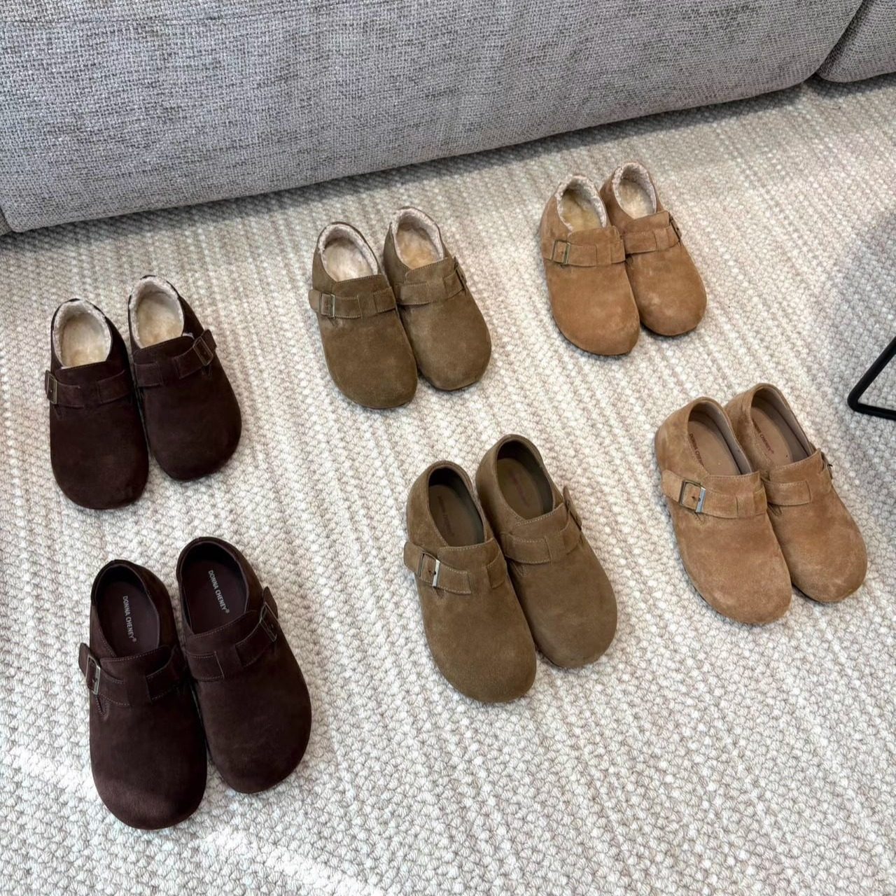 厚底5cm勃肯鞋女秋冬休闲包头穆勒鞋内增高全包单鞋加绒棉鞋