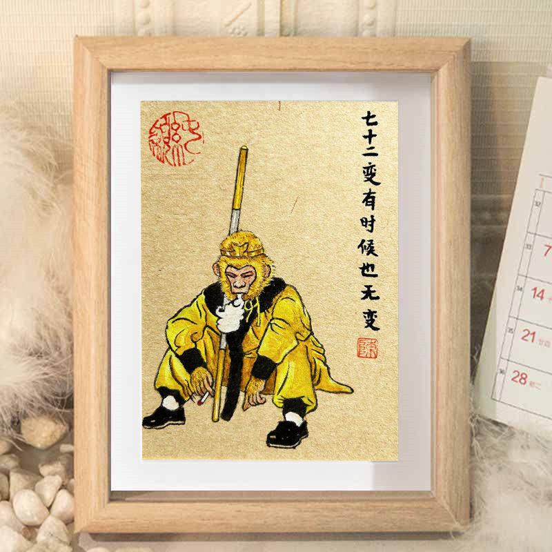 七十二变有时候也没变emo猴哥搞笑挂画相框创意摆件卧室房间装饰