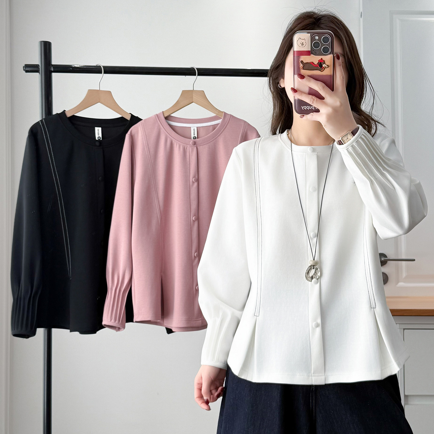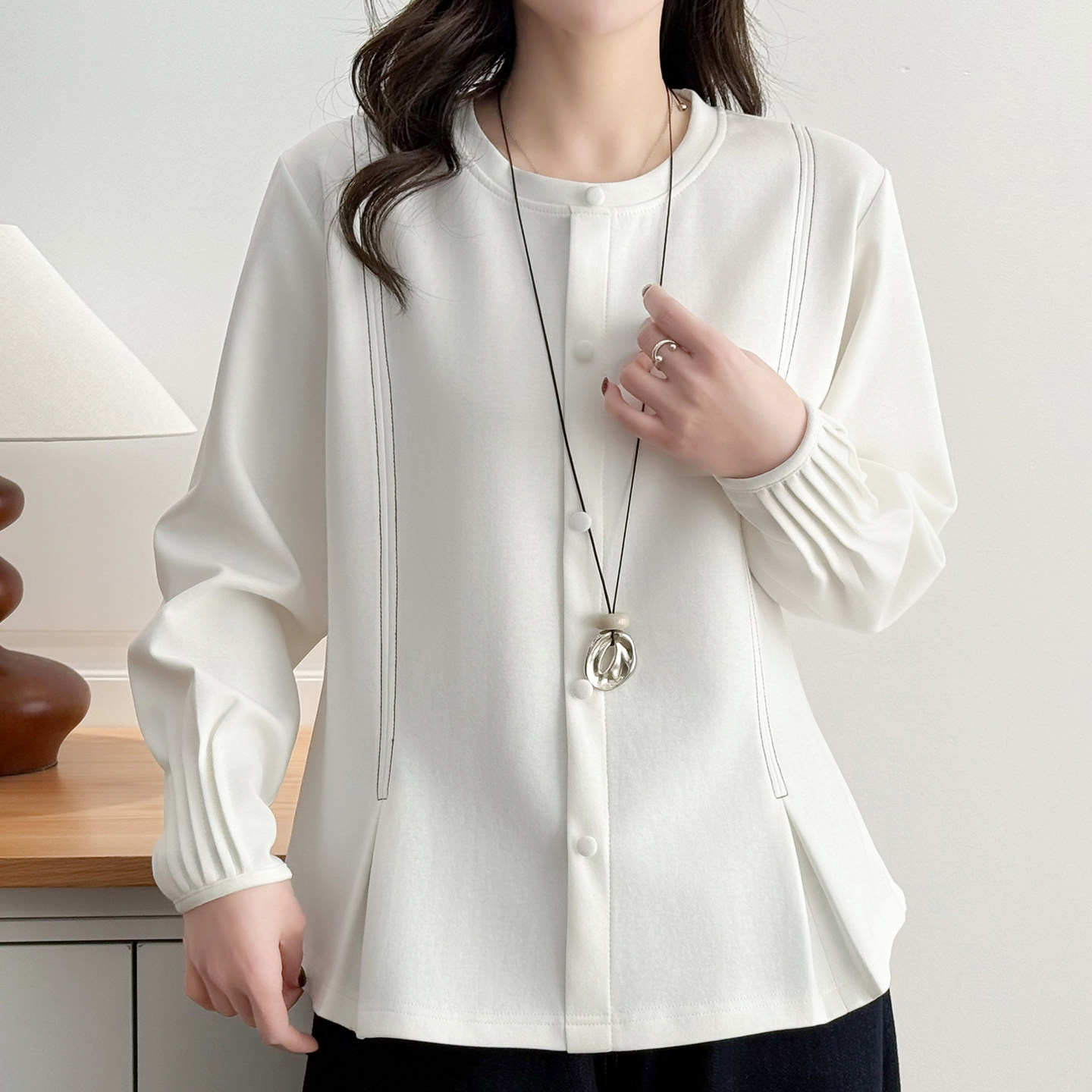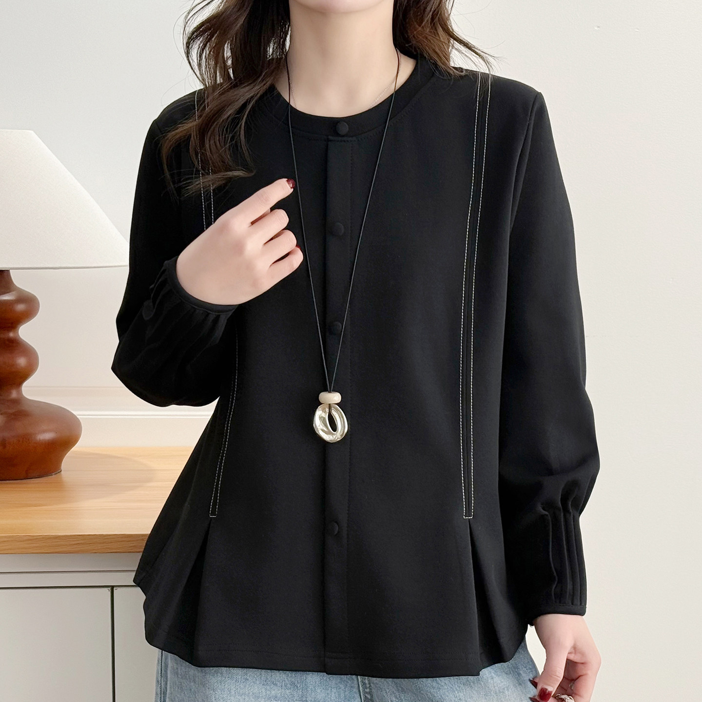 大码高级感纯色打底衫新款春装上衣胖mm气质减龄显瘦设计感卫衣女