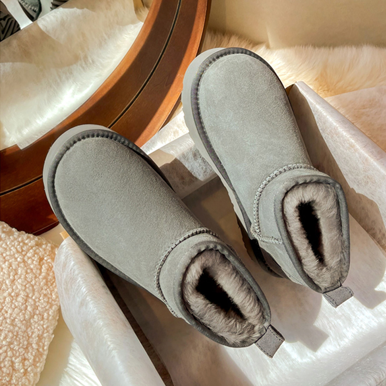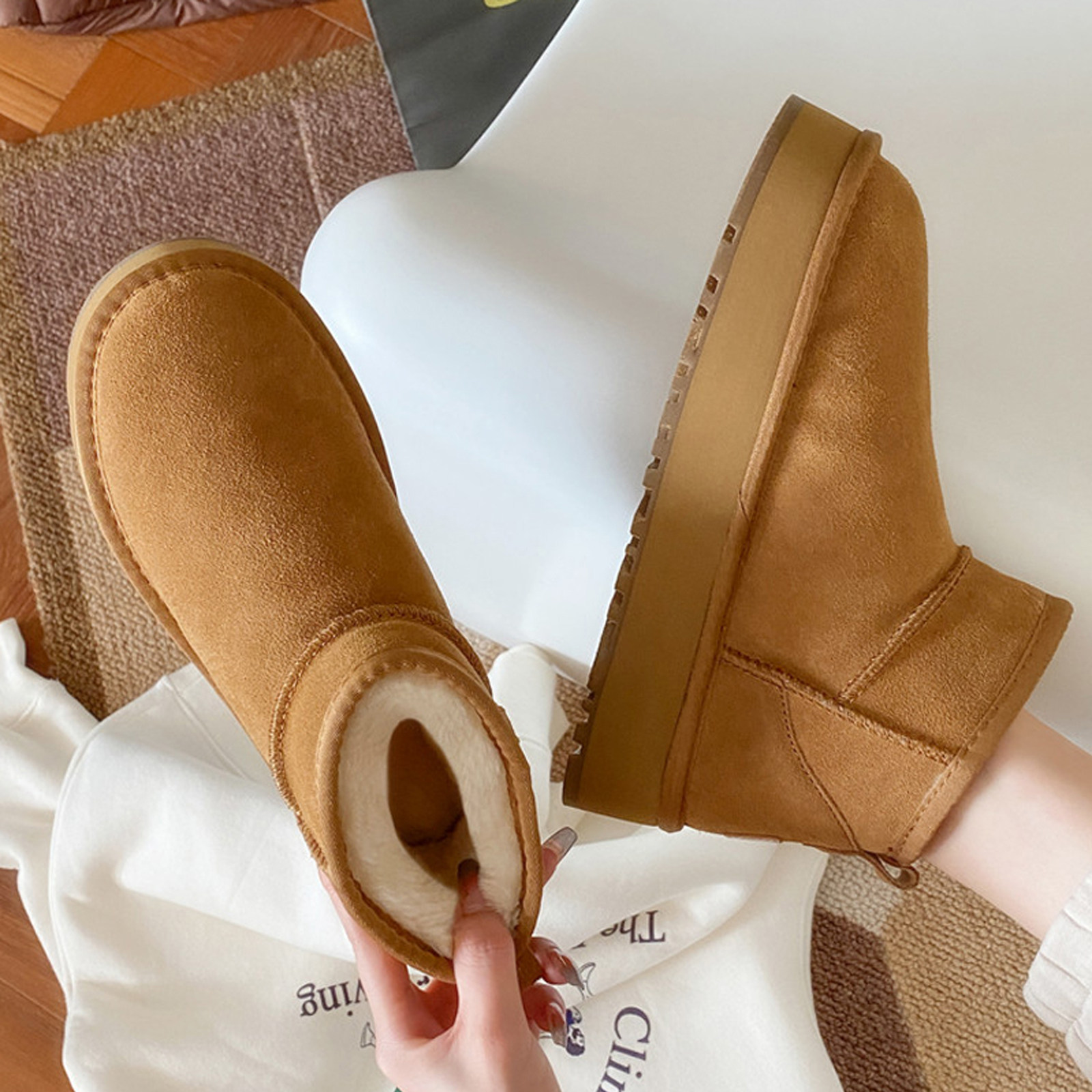 【特价清仓】真皮雪地靴女内增高8cm厚底小个子短靴冬季保暖棉鞋