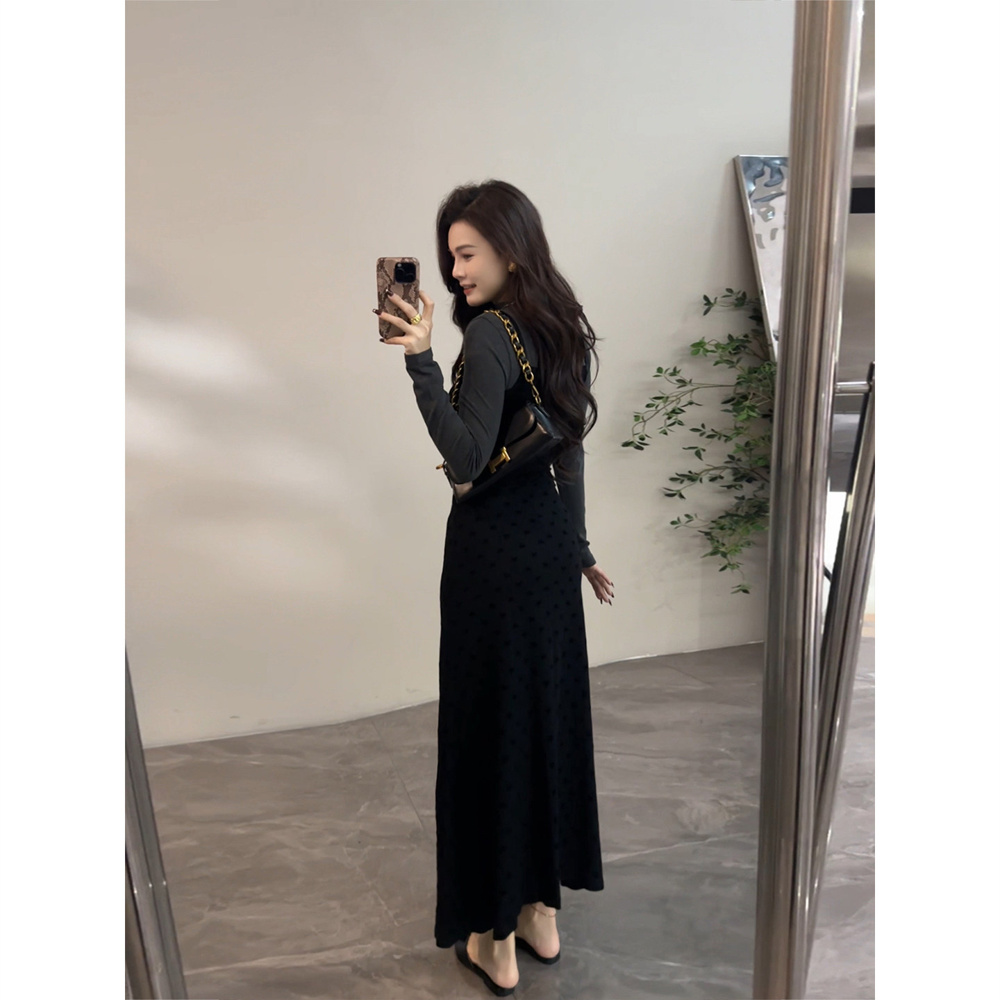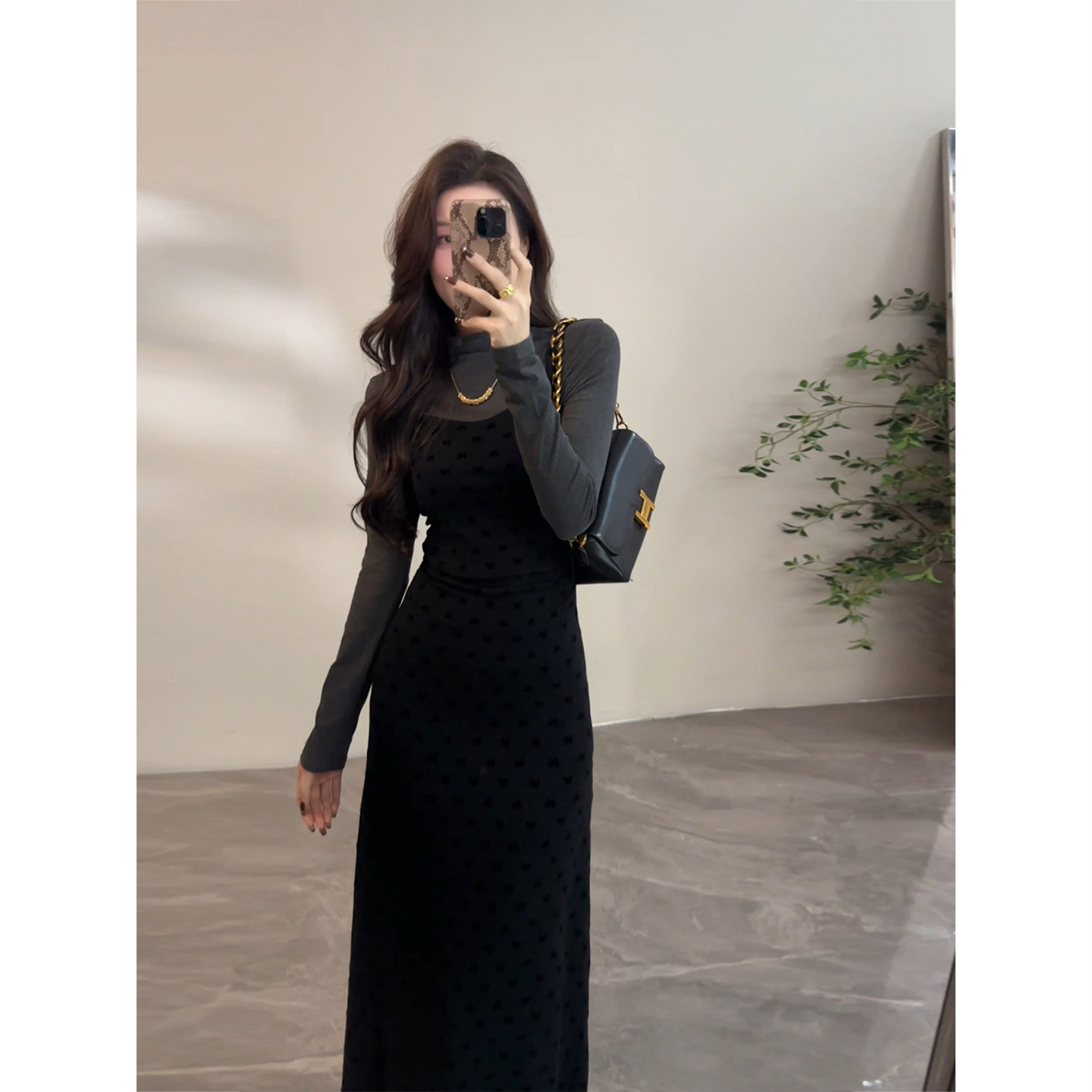 大婷婷 秋季法式假两件半高领长袖针织连衣裙显瘦气质长裙DT1567