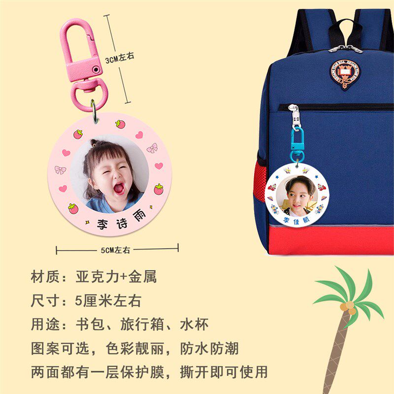 幼儿园儿童姓名钥匙扣照片定制亚克力防水男女童书包名字可爱挂件