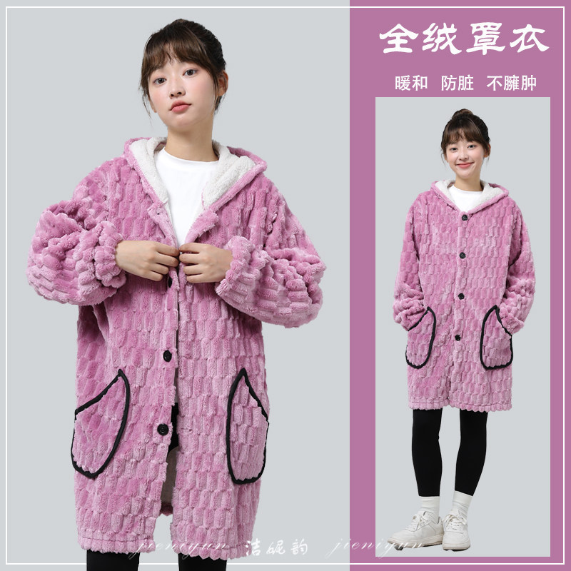 罩衣冬季加绒加厚冬天外套新款围裙女外穿洋气女式棉中长罩衣大褂