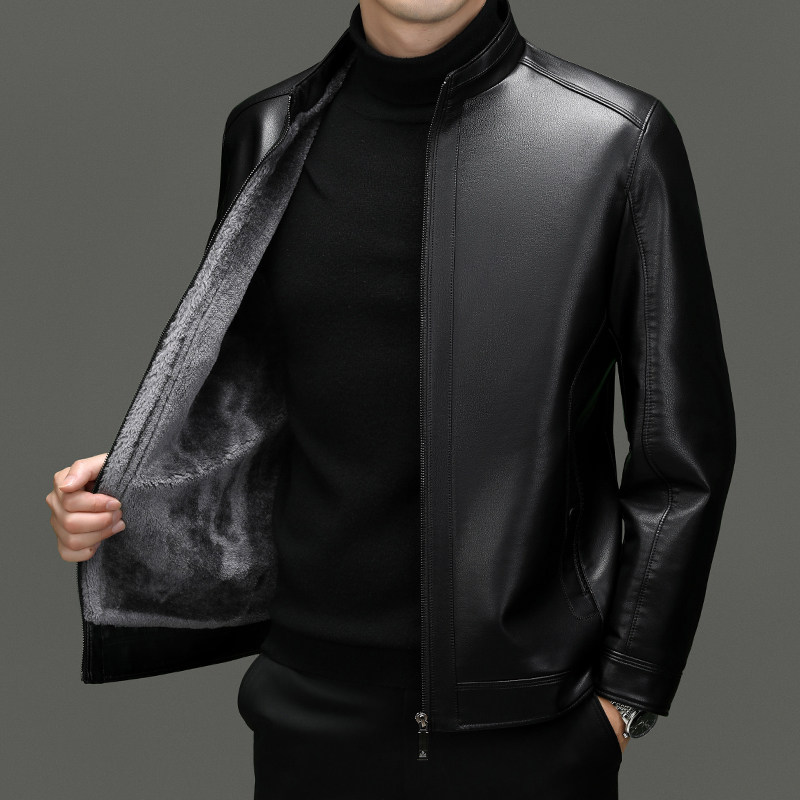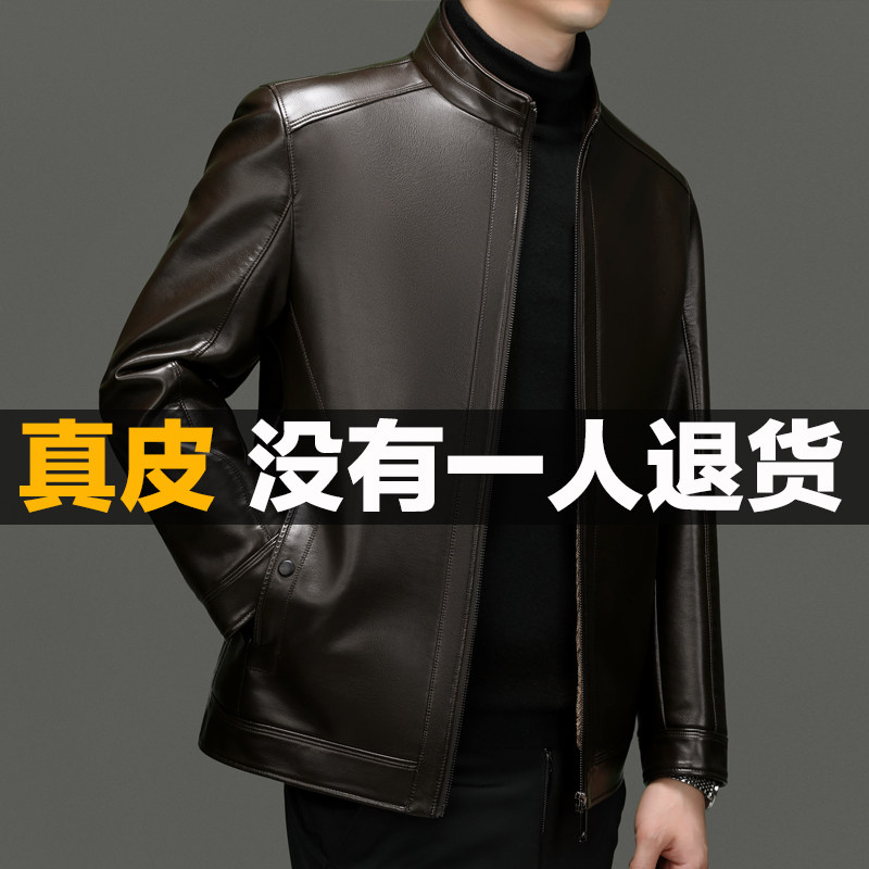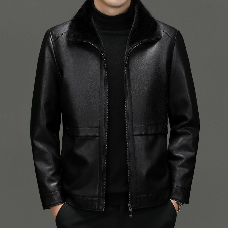 海宁真皮皮衣男皮毛一体加绒加厚爸爸装中老年皮夹克男士皮衣外套
