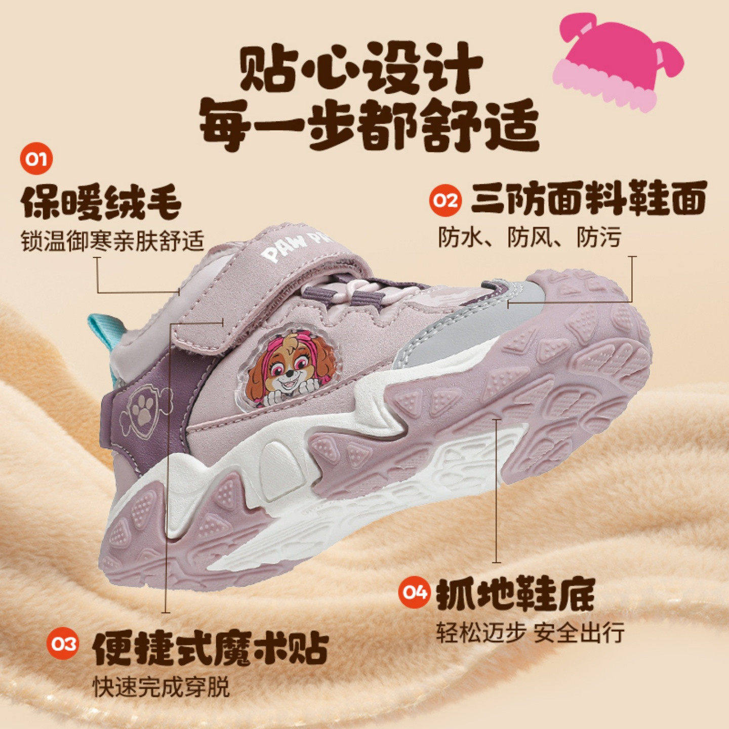 汪汪队女童运动鞋2026年秋冬新款加绒加厚棉鞋保暖舒适防滑儿童鞋