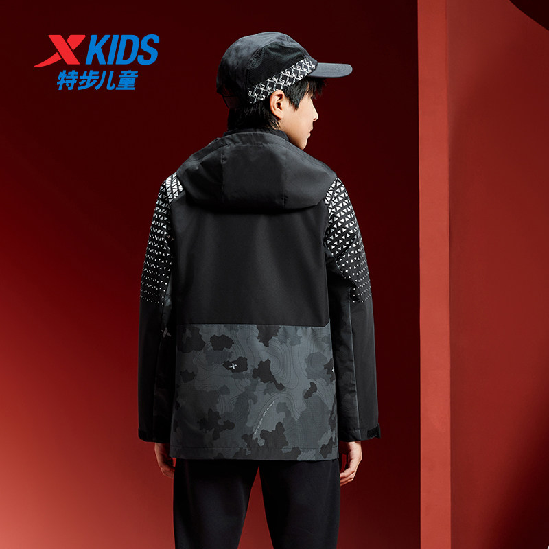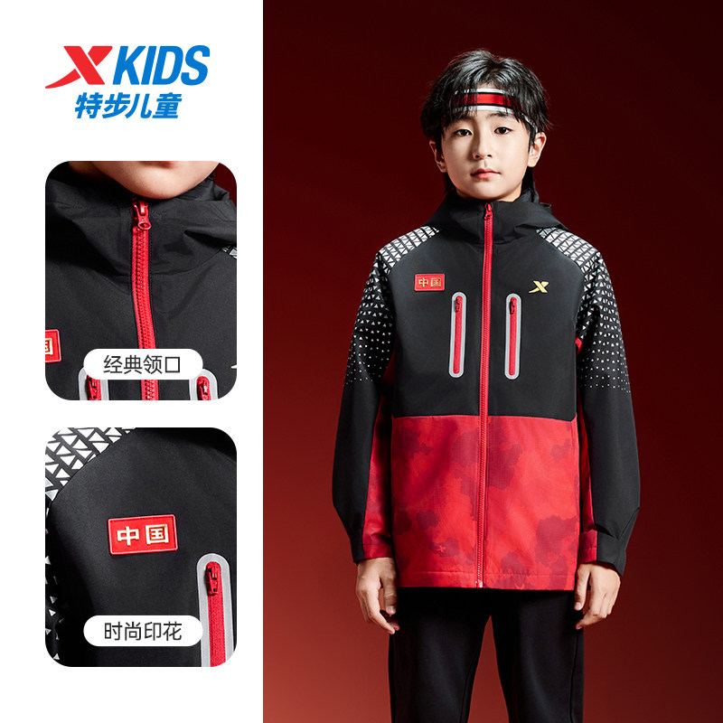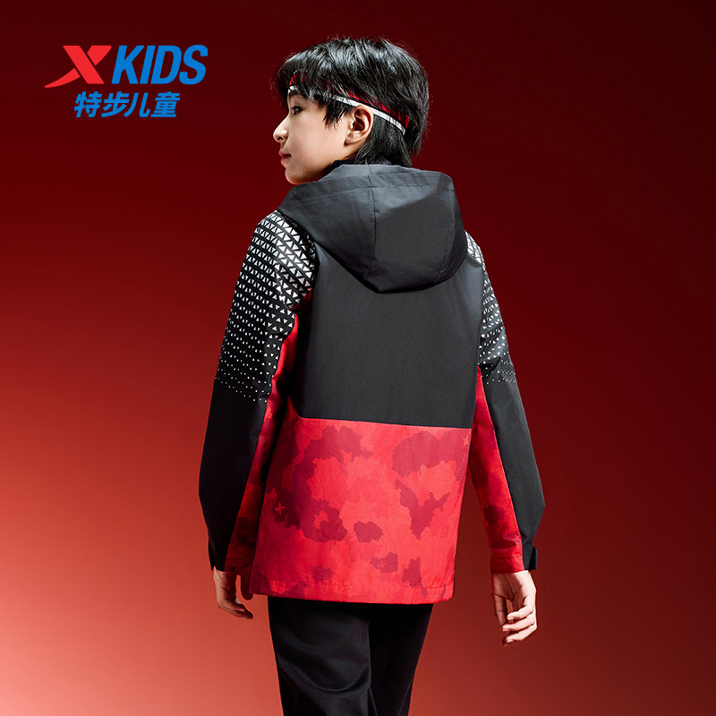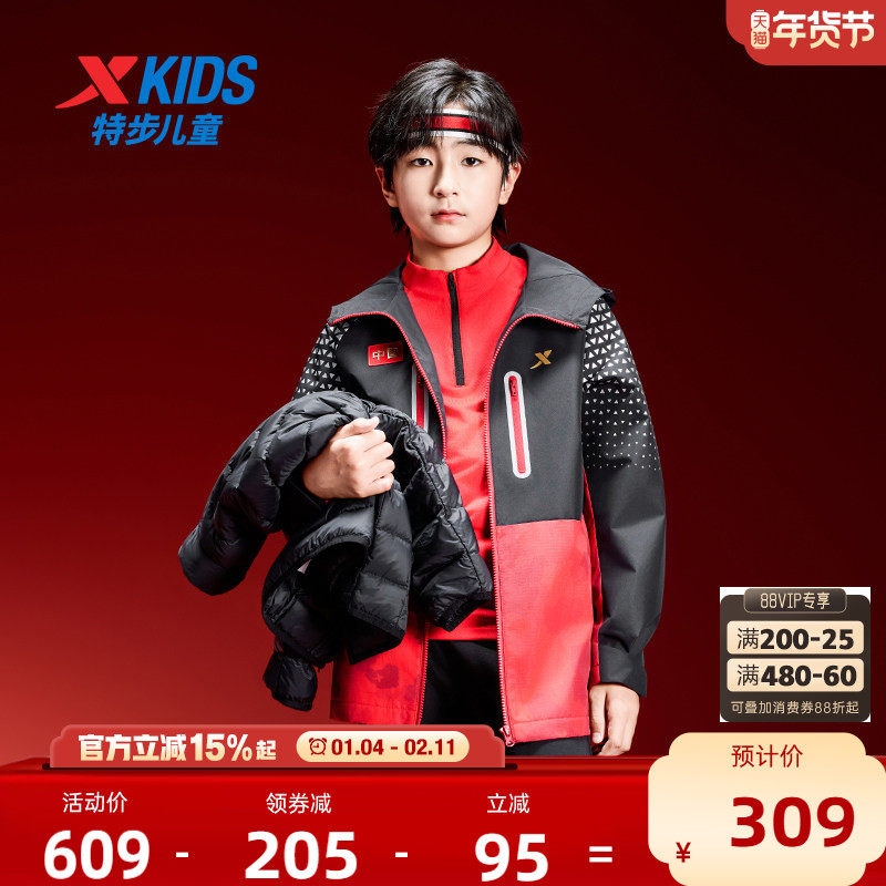 特步童装儿童三合一外套冬季新款男童羽绒服内胆新年红色加绒风衣