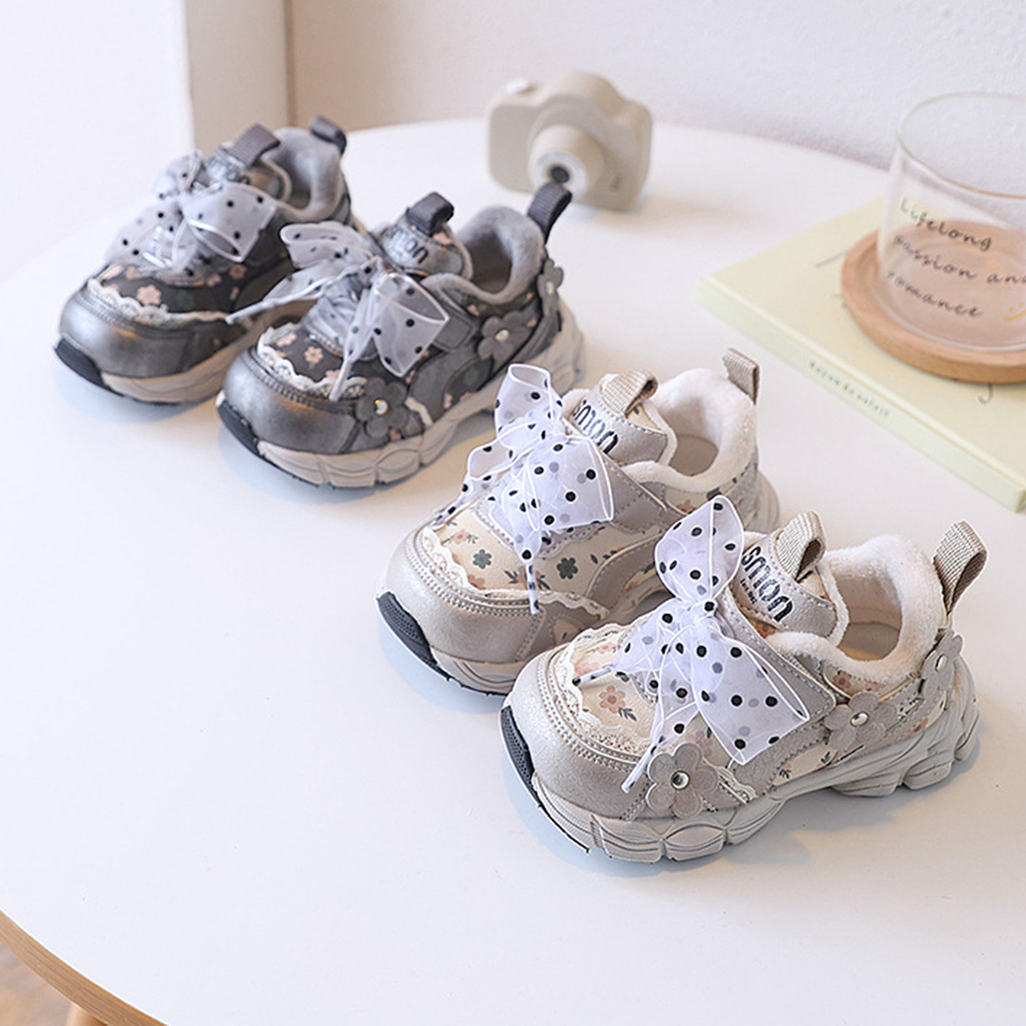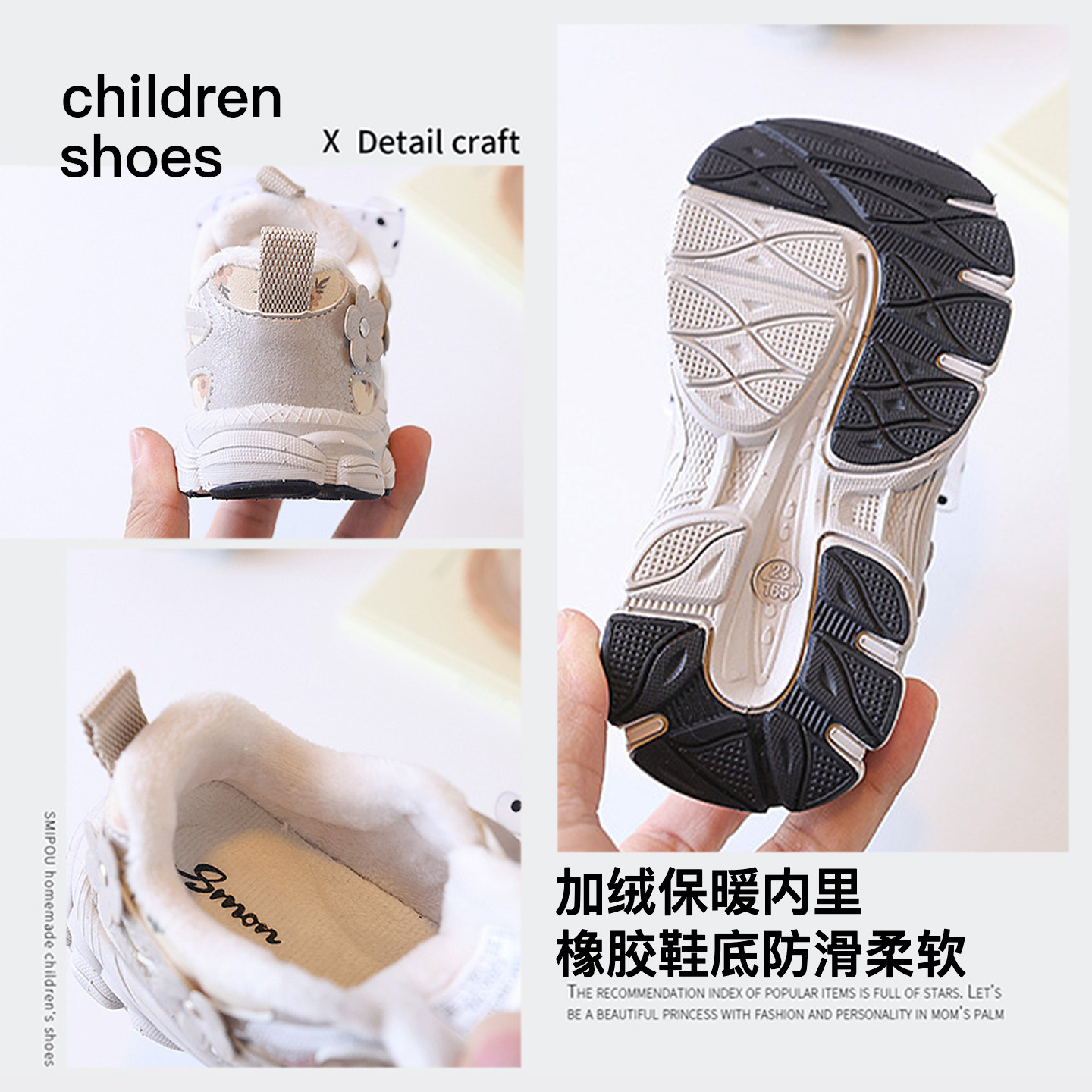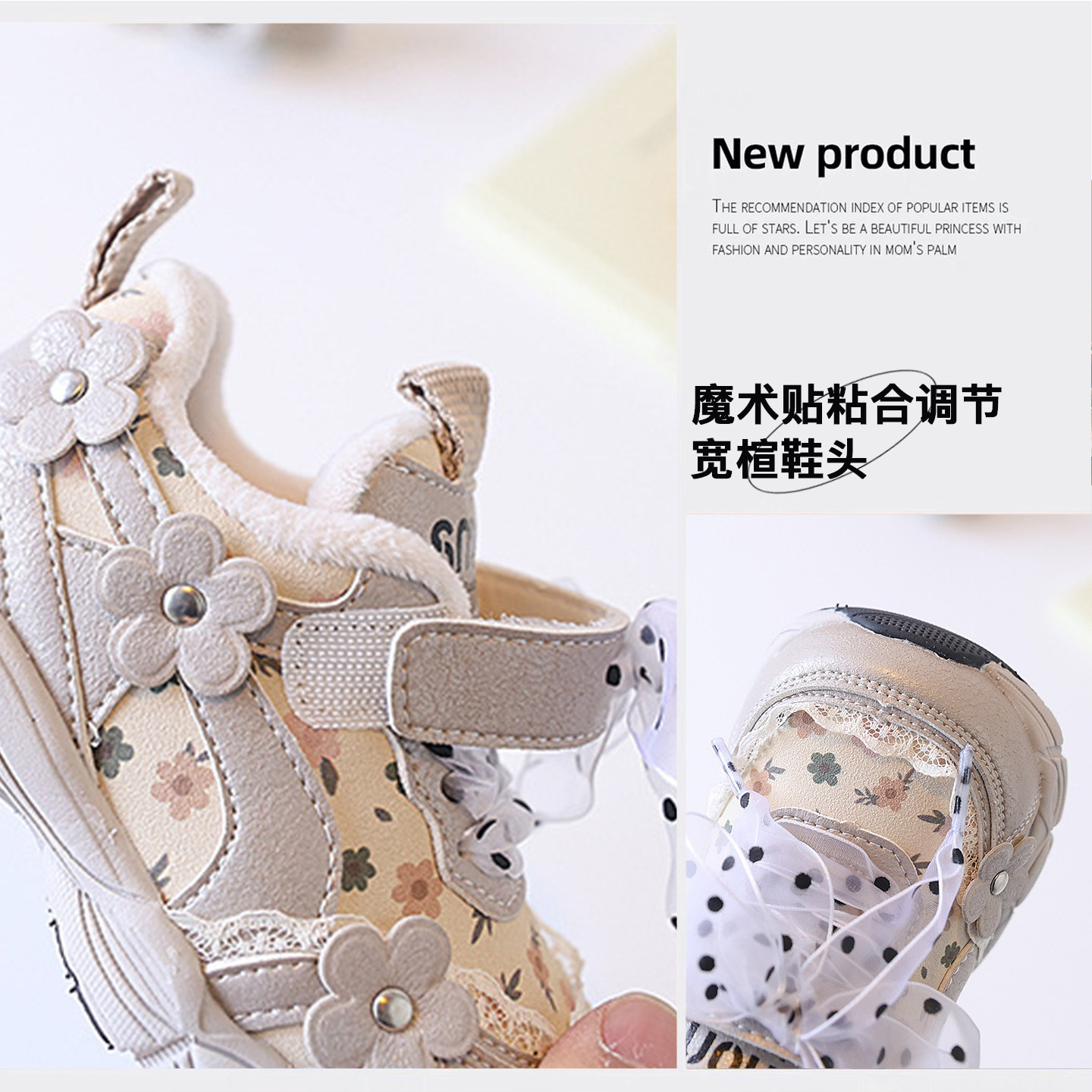 蝴蝶结韩版花朵女童加绒运动鞋2025新款冬季儿童二棉鞋宝宝公主鞋