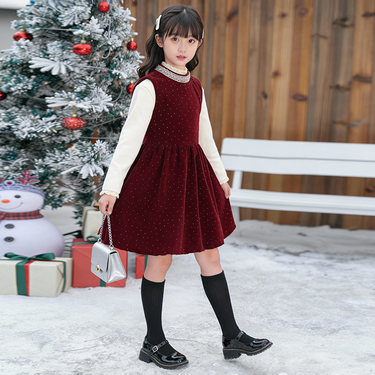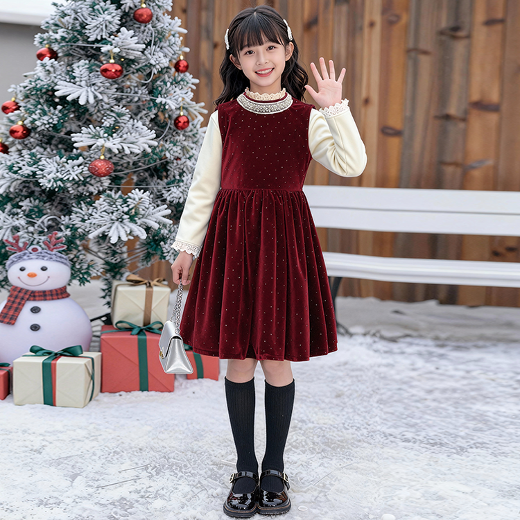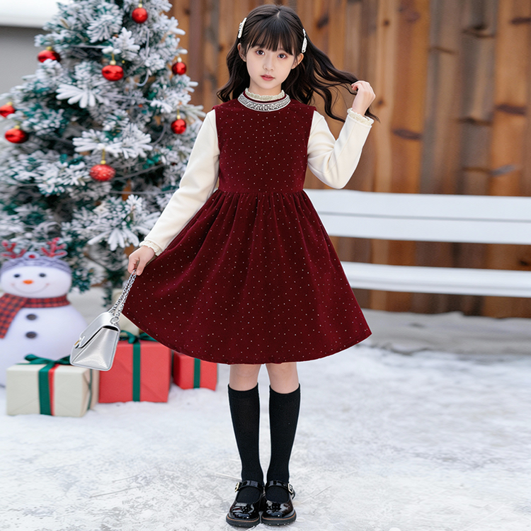 女童裙子2025新款今年流行爆款冬季高级感连衣裙轻奢小众高端红色