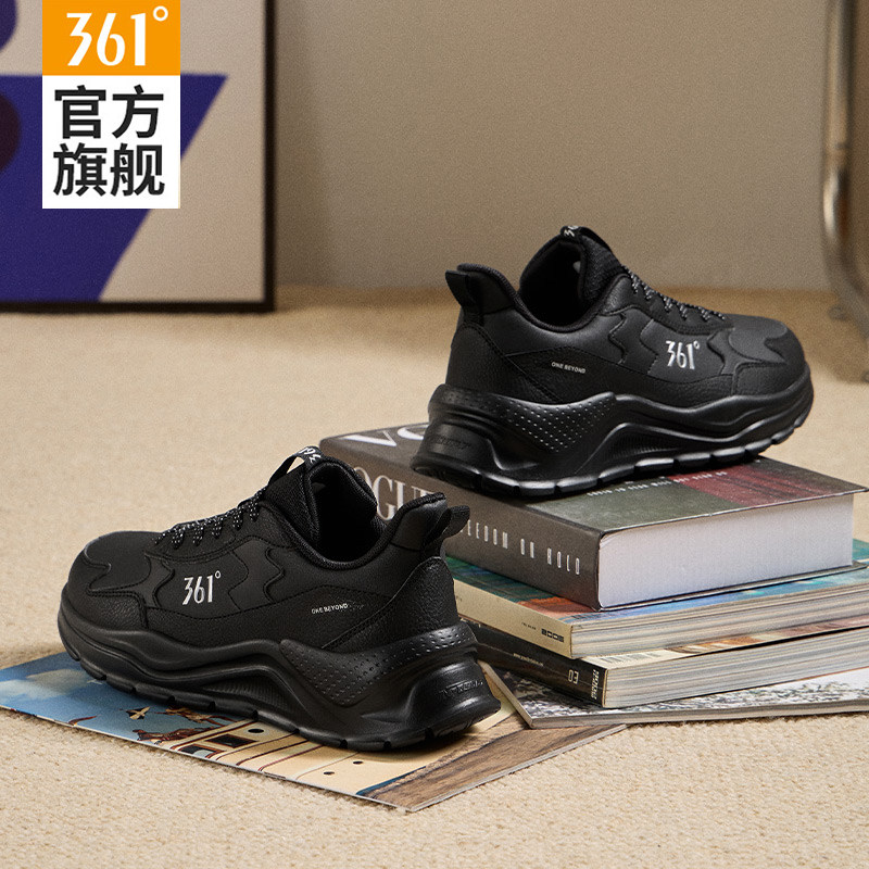 361女鞋运动鞋女款2026春秋新款皮面防水跑步鞋子减震黑色老爹鞋