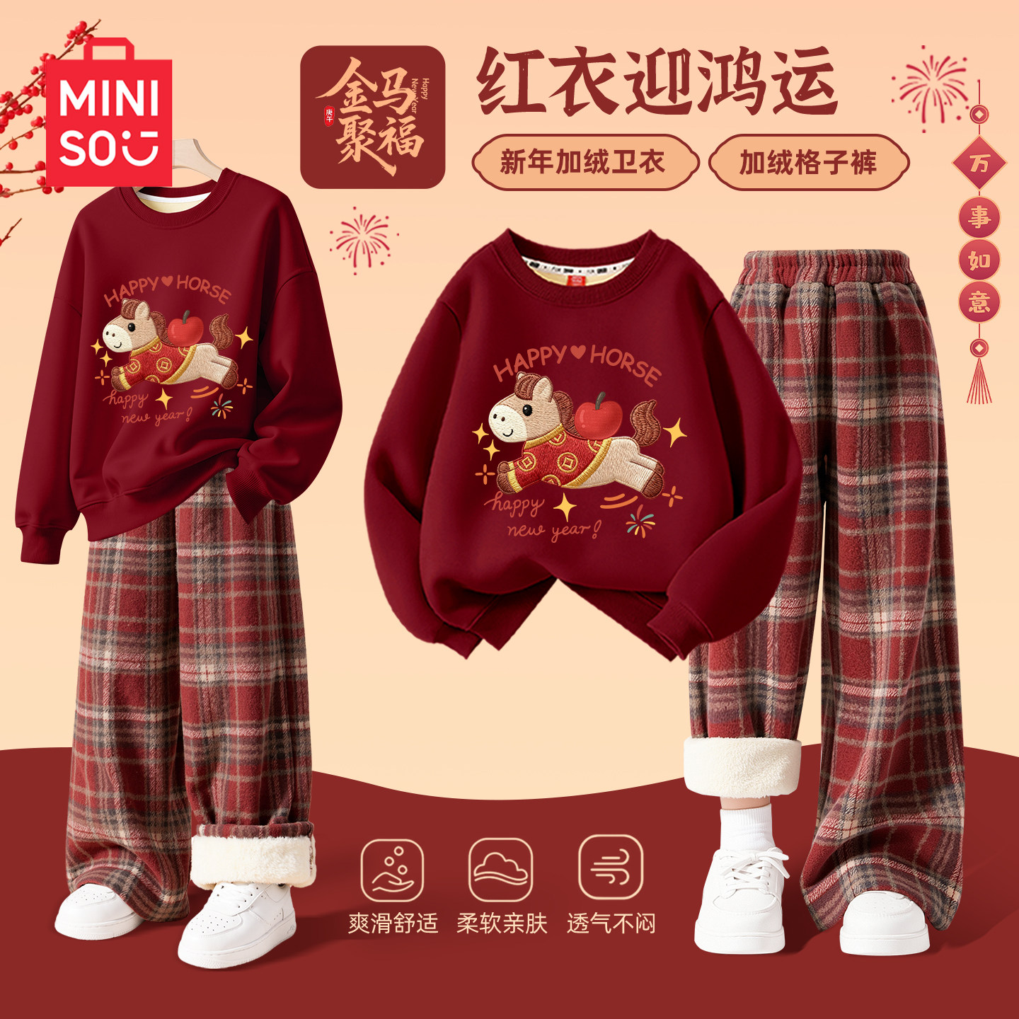 名创优品女童冬装套装本命年12岁女孩衣服2026马年过年儿童拜年服