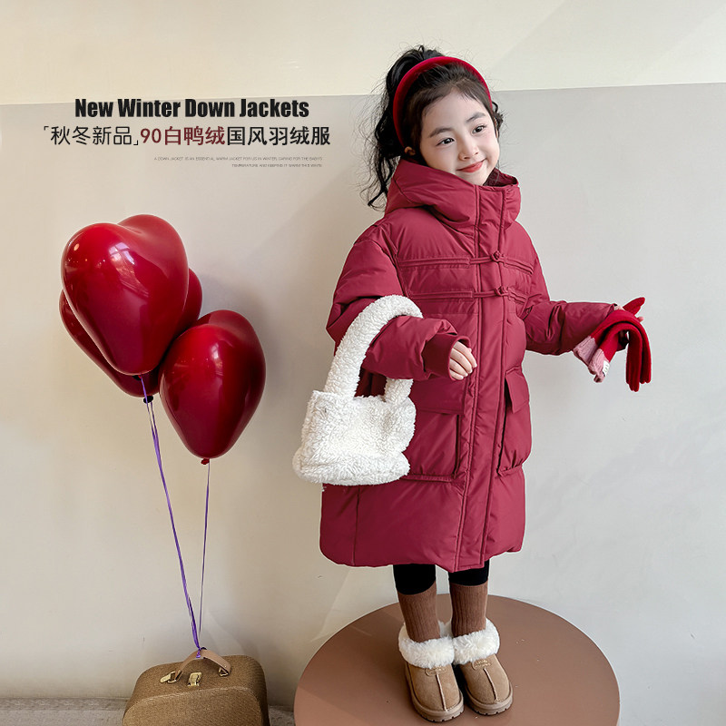 女童羽绒服冬季2026新款洋气儿童冬装白鸭绒国风中长款新年外套潮