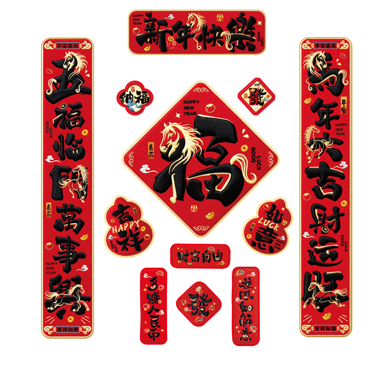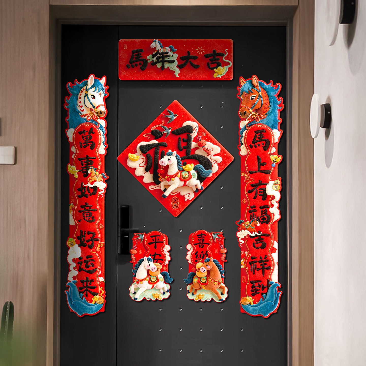 2026马年创意磁吸对联新年福字卡通新款春联春节入户5D毛门联门幅