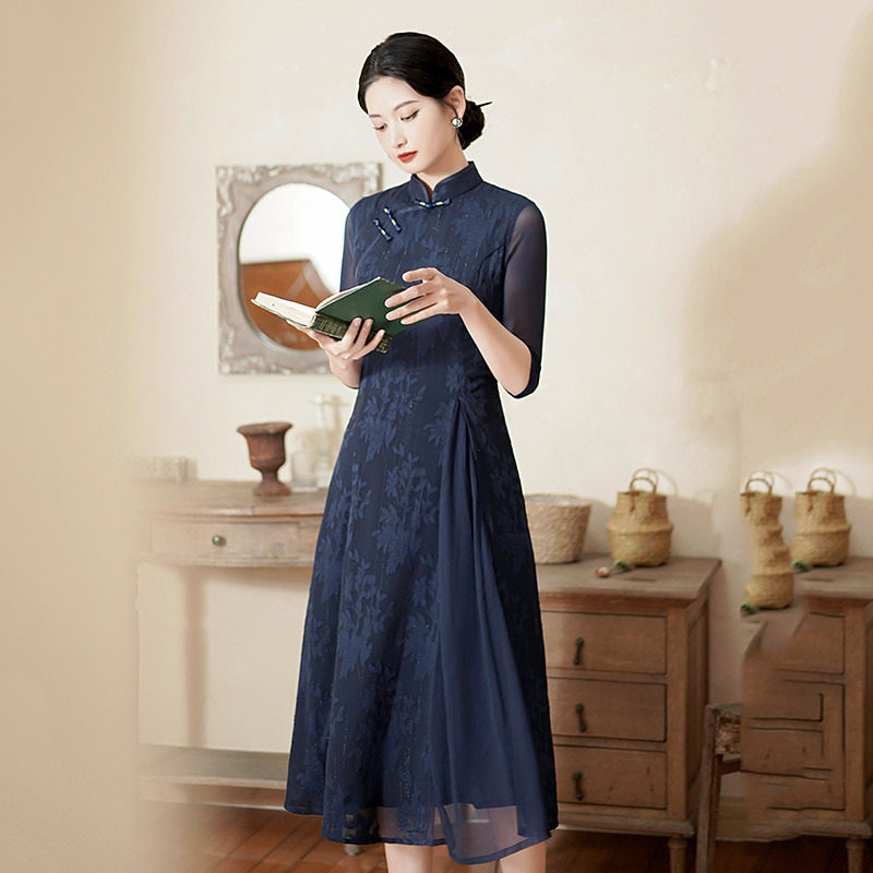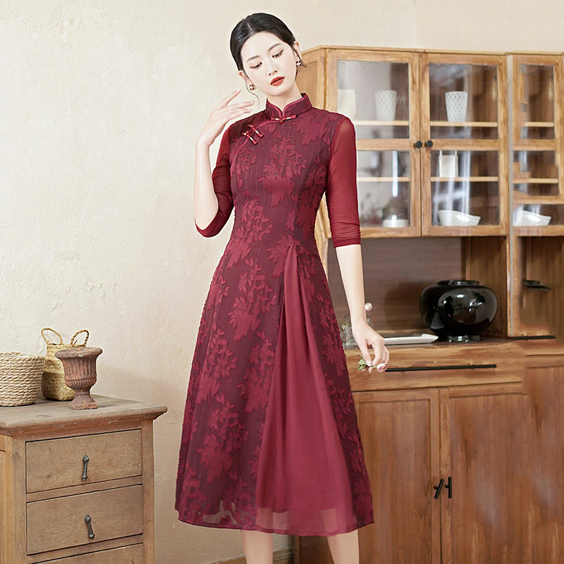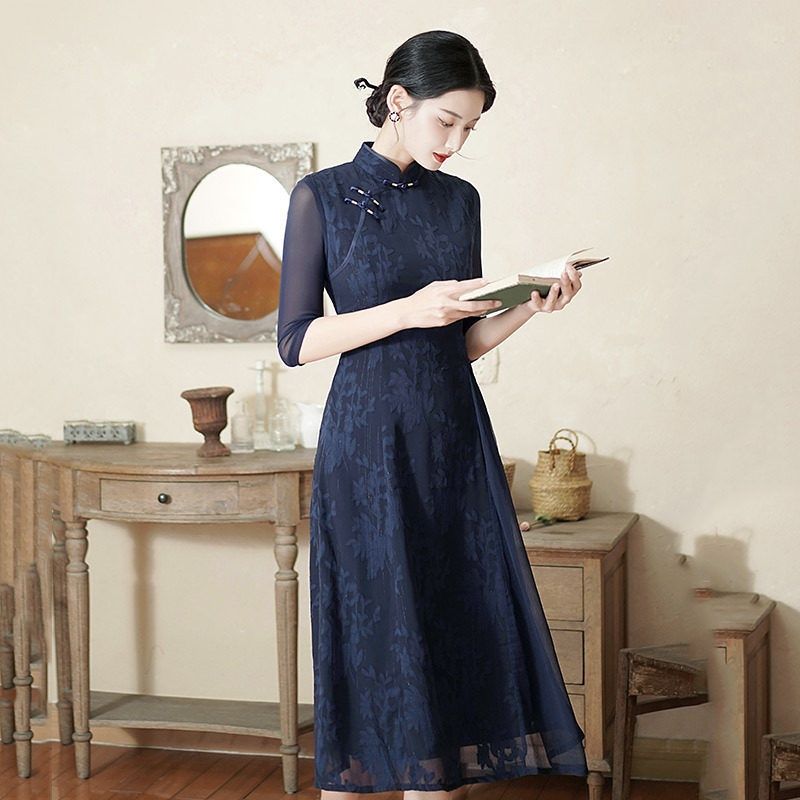 显瘦妈妈奥戴国风新中式改良旗袍2026新款女复古长袖连衣裙春
