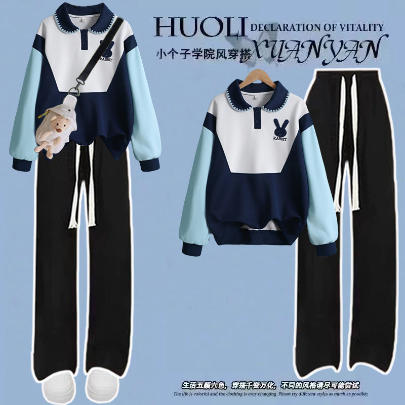 女童Polo领卫衣套装2026新款春装今年流行爆款外套中大童拼色上衣