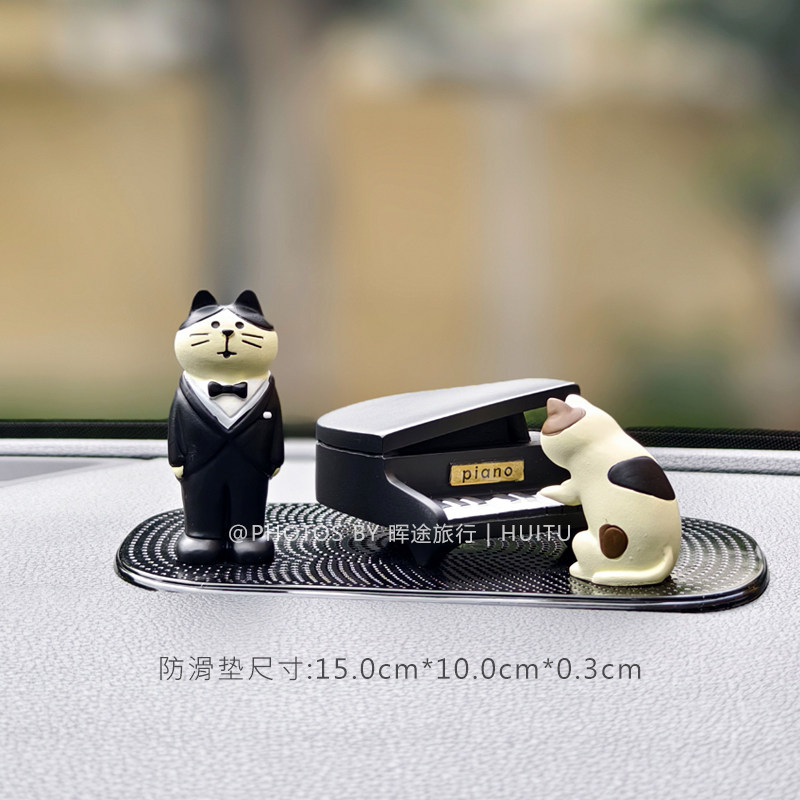 猫咪钢琴家高级感小众汽车内装饰品中控台车载创意解压治愈系摆件