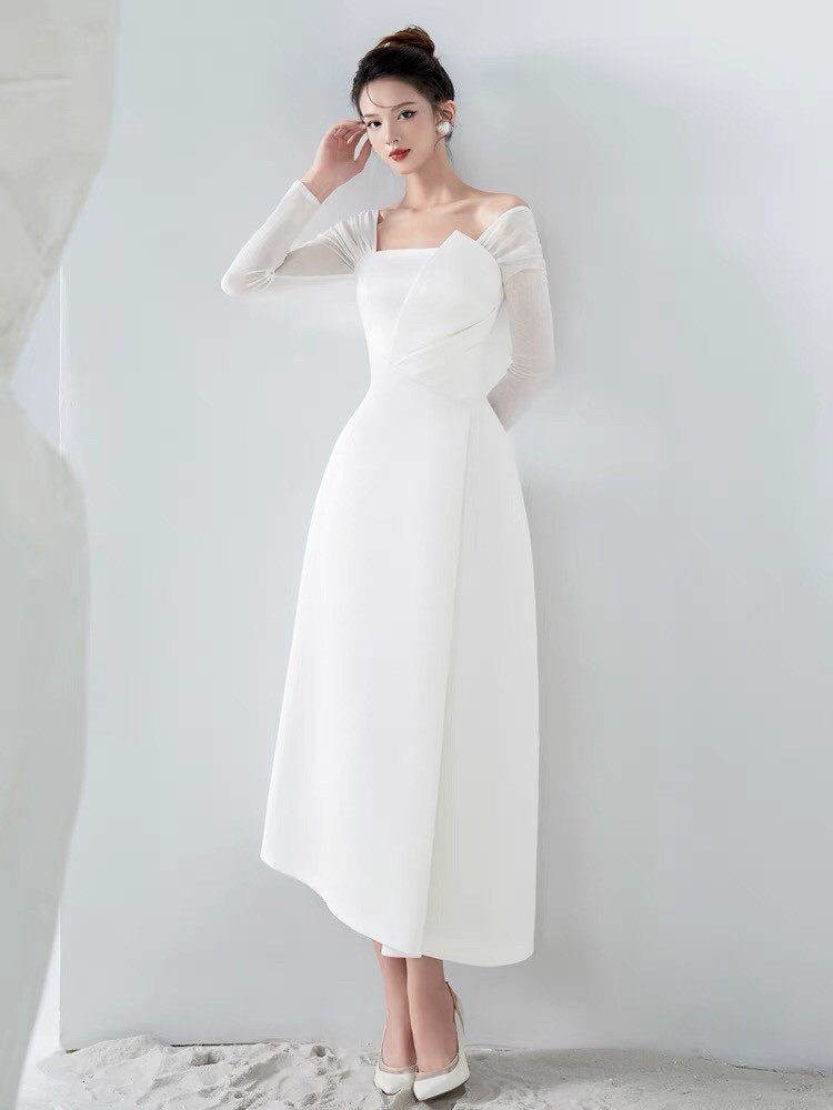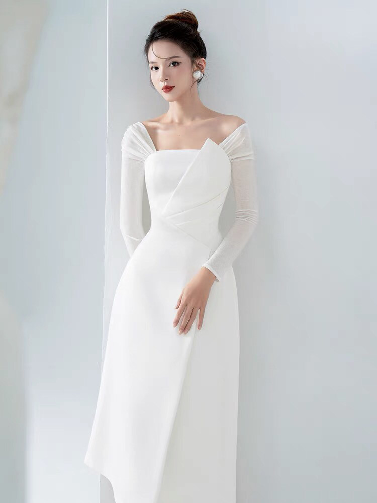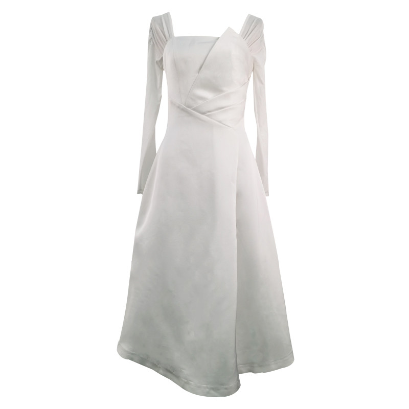 轻奢高级感白色抹胸连衣裙越南设计师轻纱长袖针织拼接不规则长裙