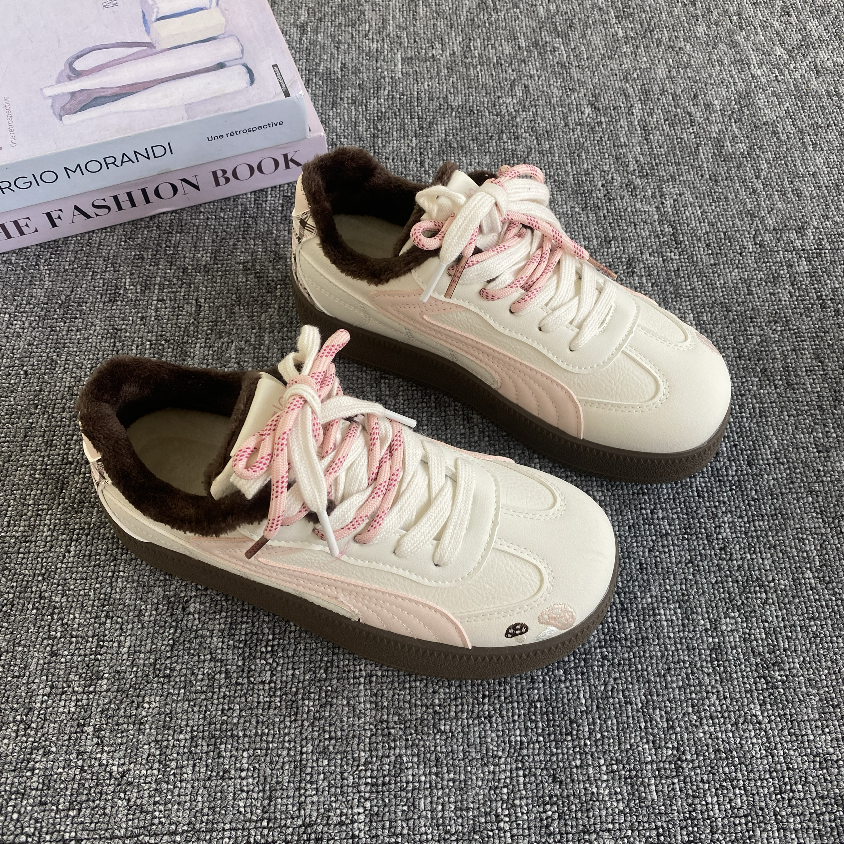 2025新款加绒保暖小白鞋女款冬季平底运动鞋时尚休闲板鞋子百搭潮