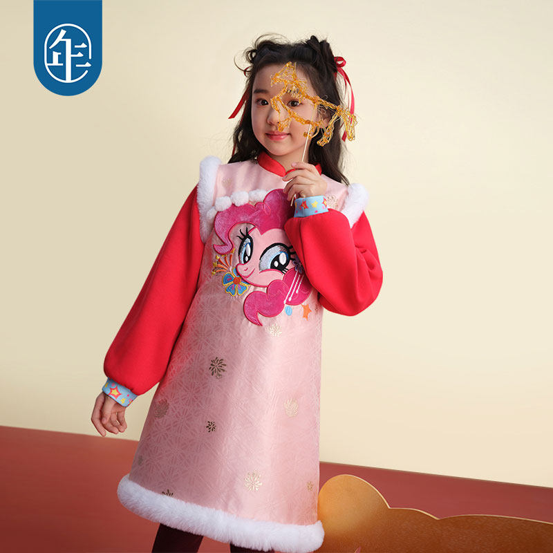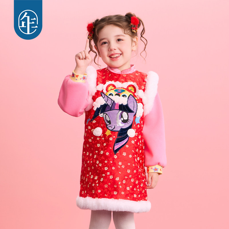 小马宝莉联名年衣童装旗袍连衣裙冬女童中式加厚裙子年服女宝
