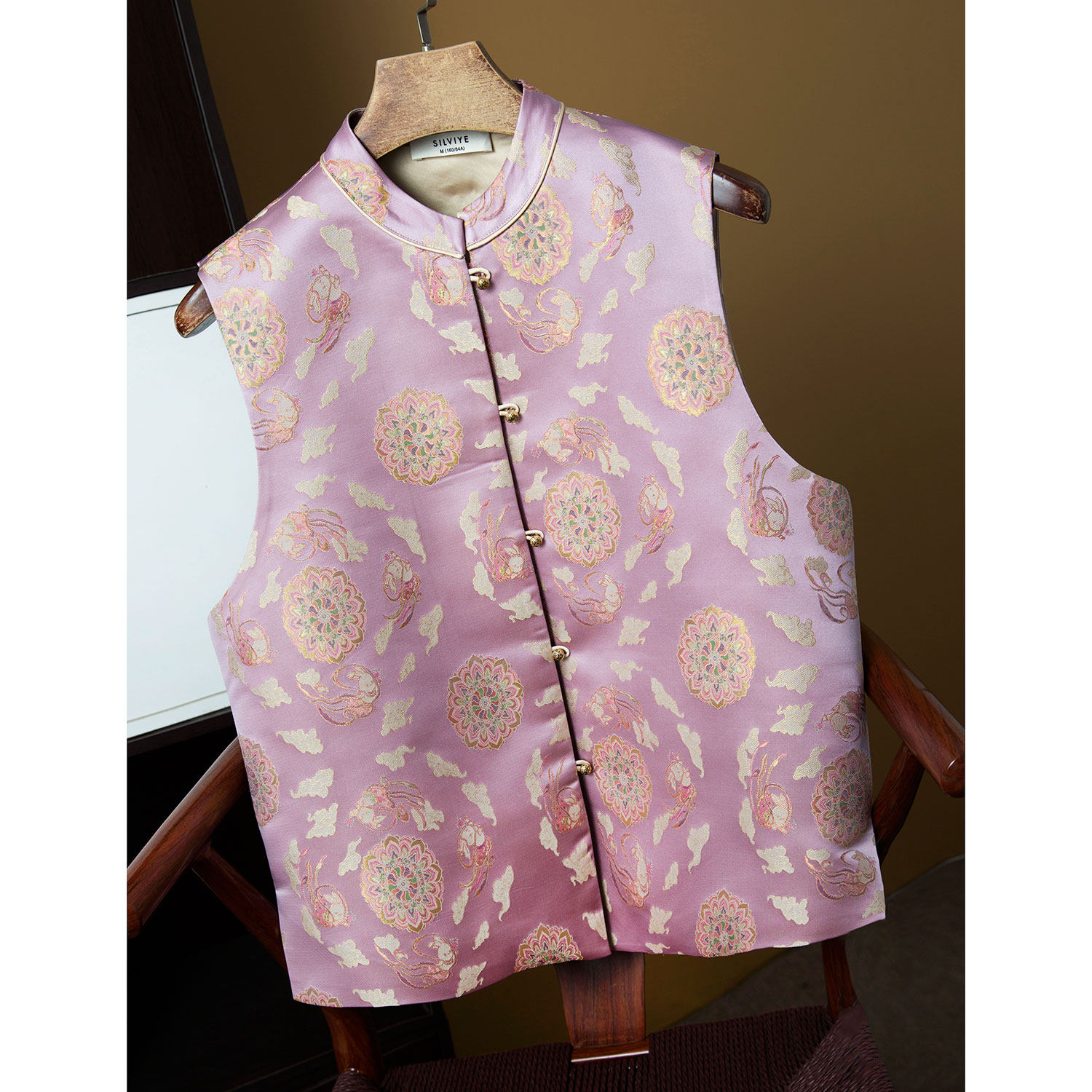 丝艺40姆真丝宋锦织金国风马甲年轻款提花新中式马夹2026新款春季