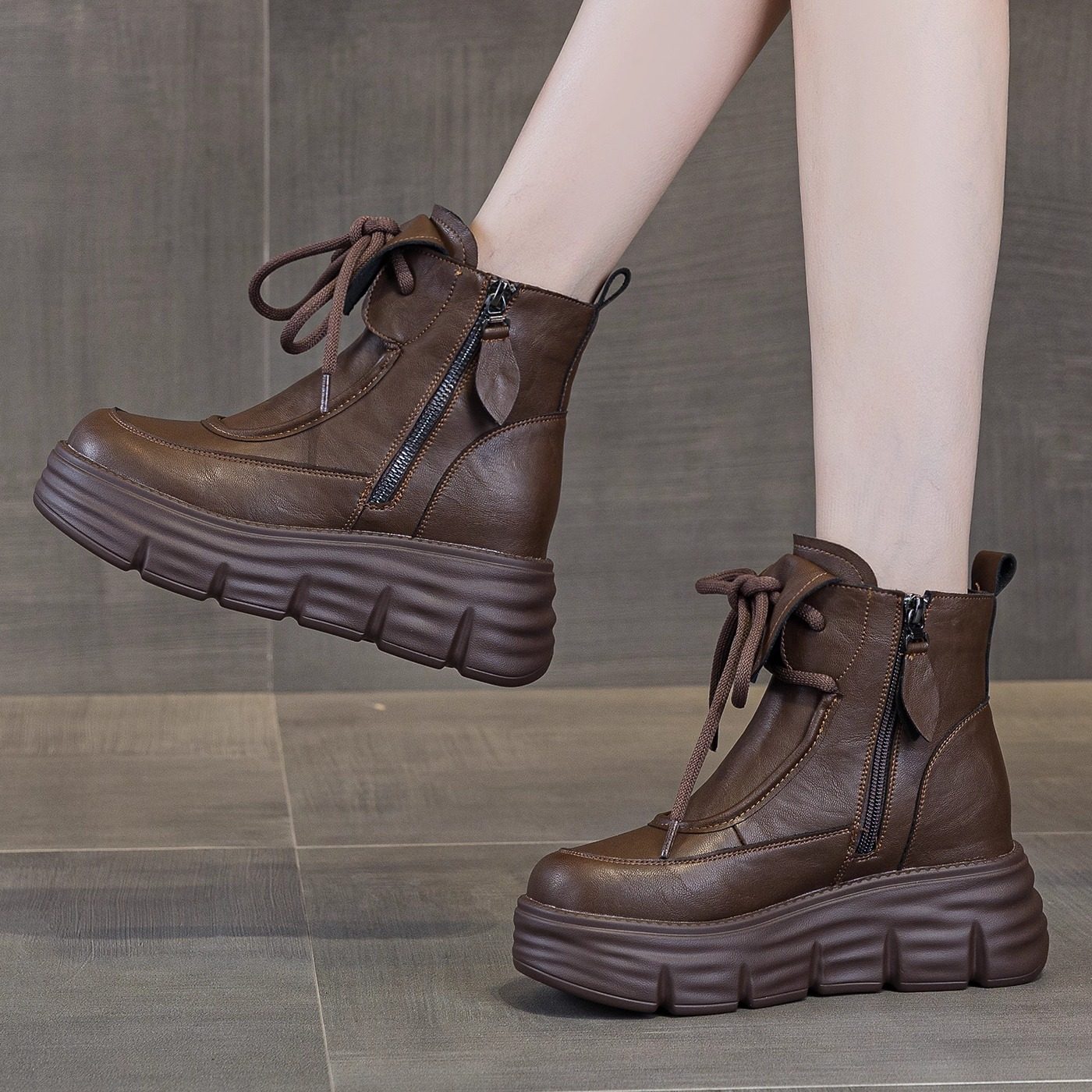 舒适软底马丁靴女2026新款冬季加绒厚底短靴内增高8cm小个子靴子