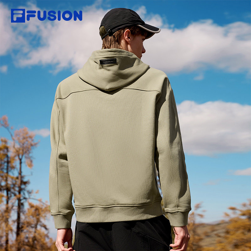 FILA FUSION斐乐潮牌女款连帽卫衣秋冬款纯棉男极简纯色运动上衣