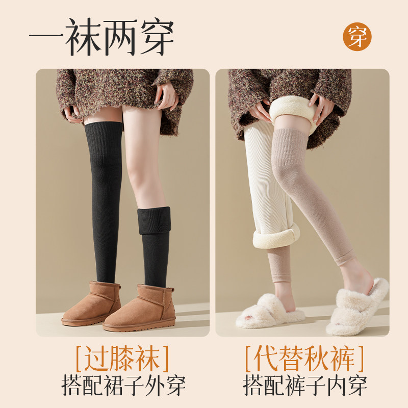 羊绒护膝袜女秋冬季加绒加厚长筒袜孕妇保暖膝盖腿套羊毛过膝袜子