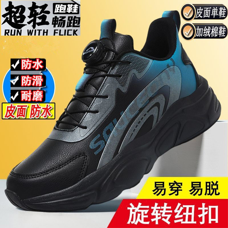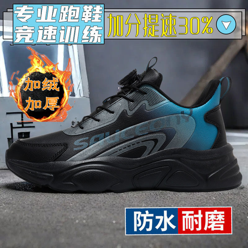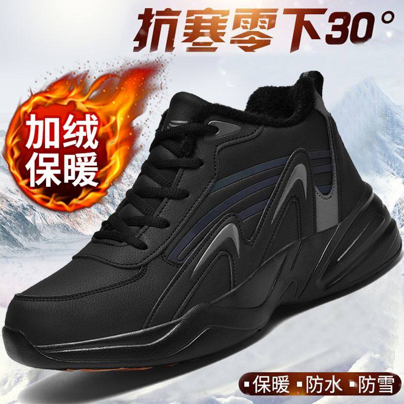 正版秋冬季加绒保暖运动鞋男款学生皮面防水青少年跑步鞋男鞋棉鞋
