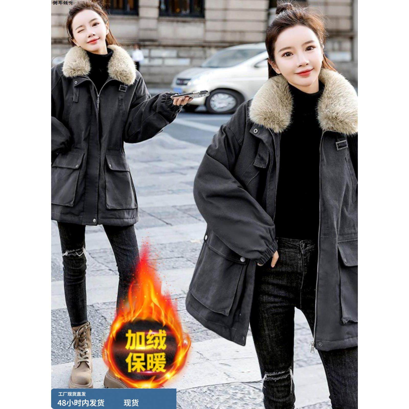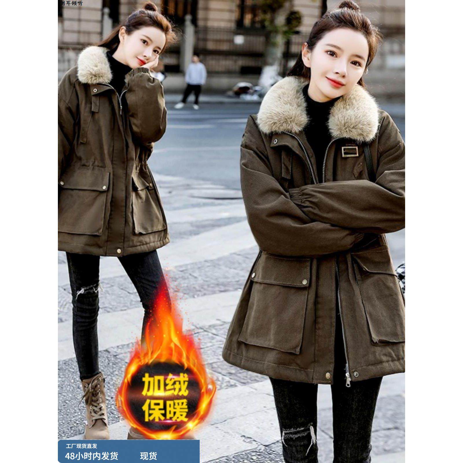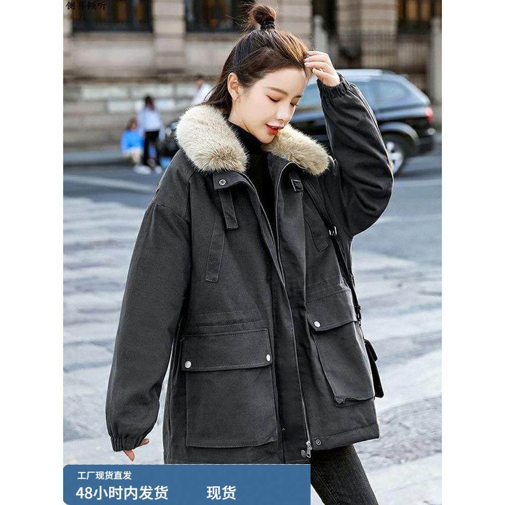女士派克服冬季2025新款大码胖mm中长款加绒加厚棉衣棉服女款外套