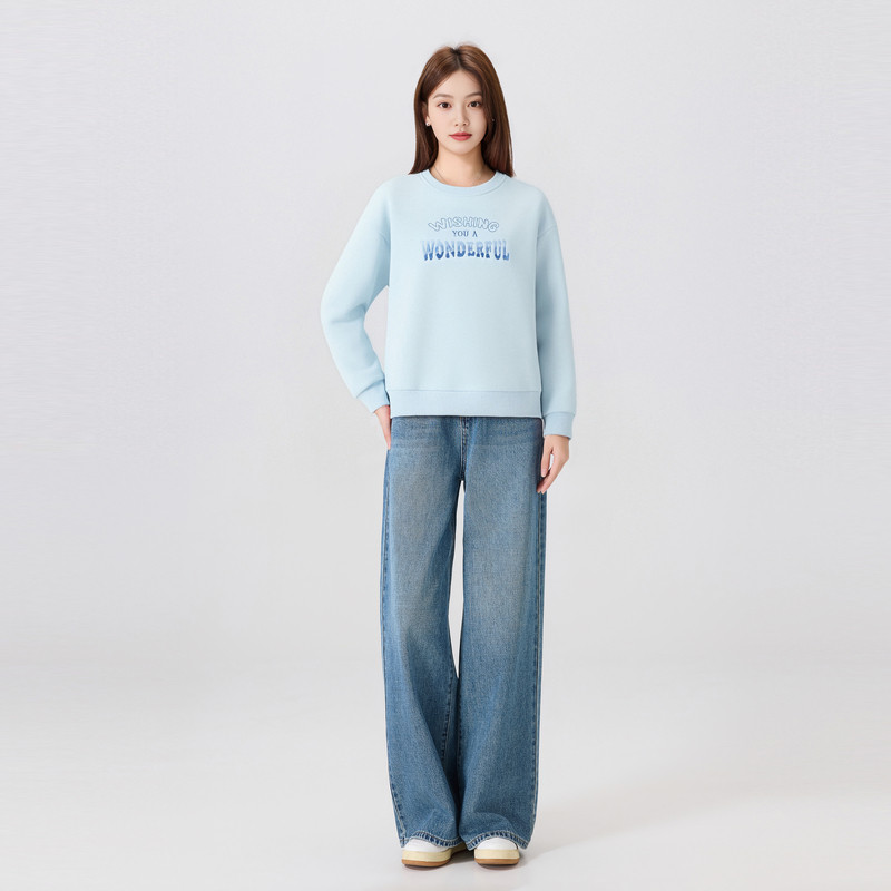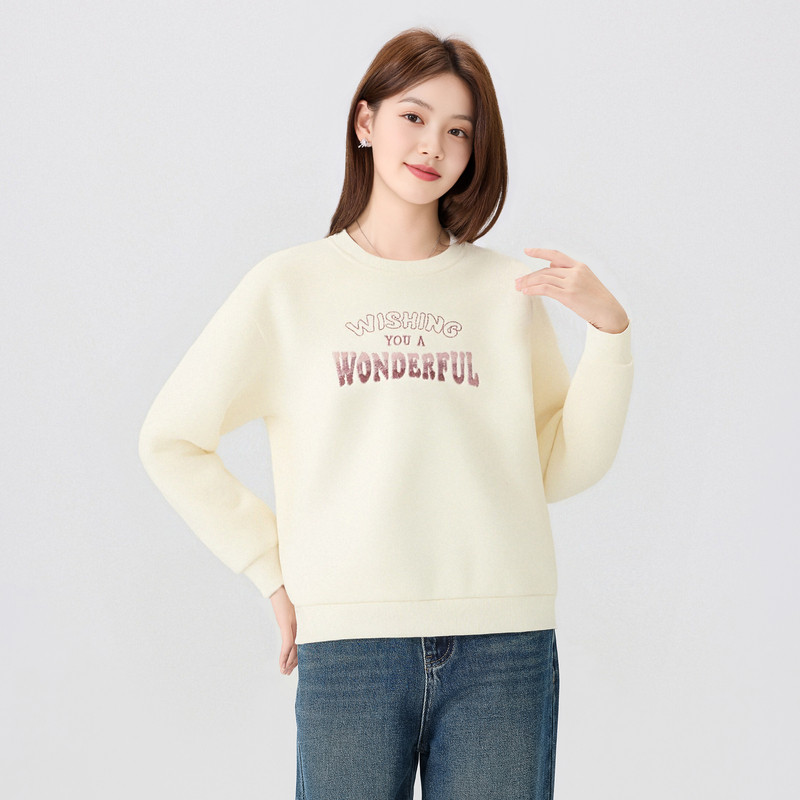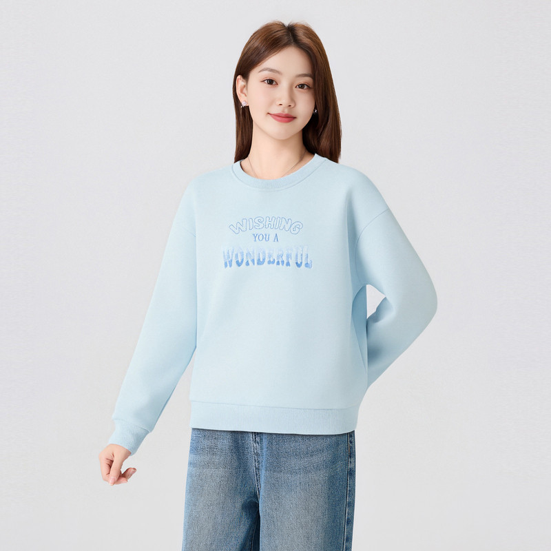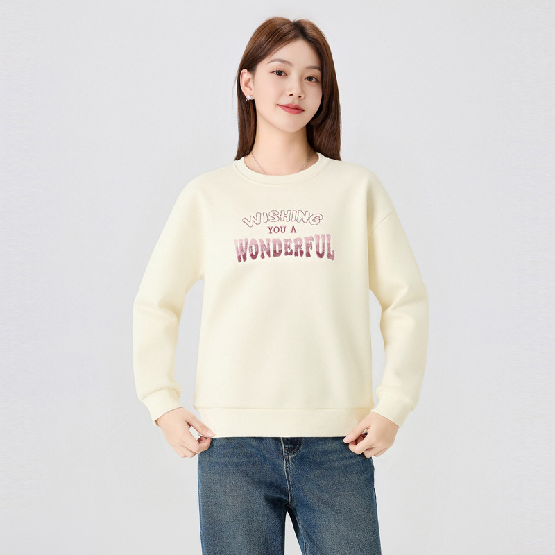 快鱼卫衣女2025新款冬装加绒保暖柔软舒适简约刺绣宽松女装上衣