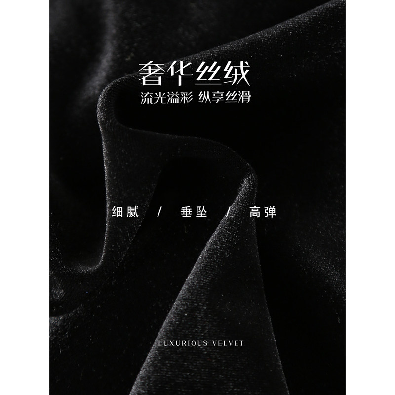 黑色V领丝绒连衣裙女2026年春季新款法式收腰长款A字年会礼服裙子