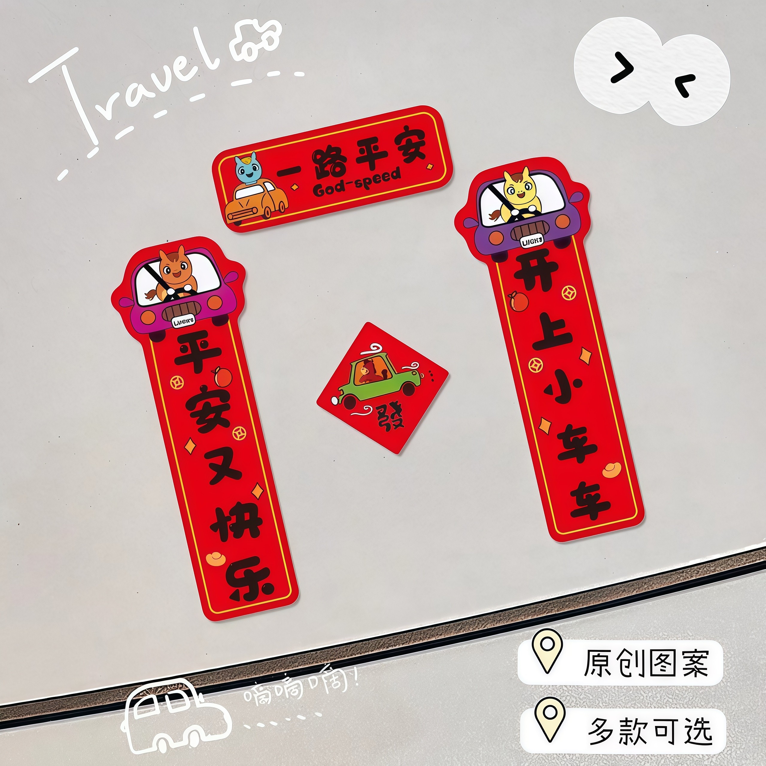 2026马年磁吸车对联创意春联汽车迷你对联车贴油箱盖车尾装饰贴
